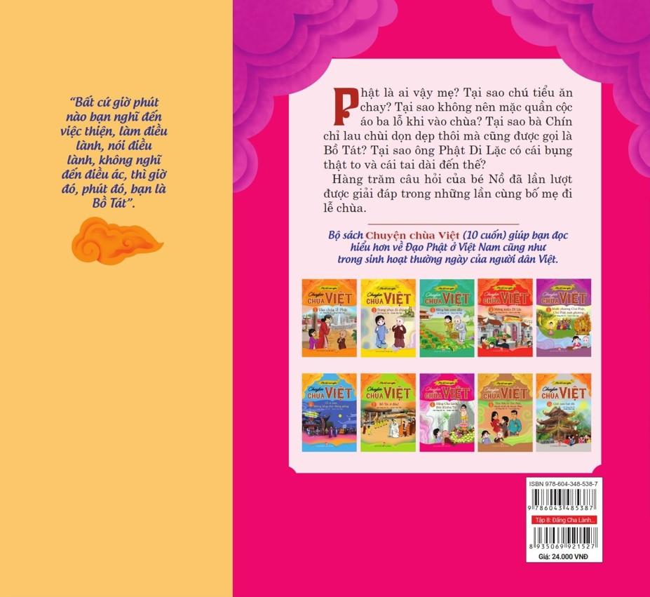 Thông qua câu chuyện bé Nồ cùng gia đình đi lễ chùa, vào chùa gặp Sư trụ trì và chú tiểu Tâm Tĩnh, bộ Mẹ kể con nghe – Chuyện chùa Việt lần lượt hé mở những kiến thức cơ bản về đạo Phật.