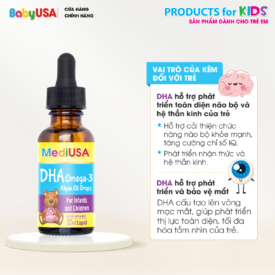 ✨MediUSA DHA Omega 3 Algae Oil Drops - Thực Phẩm Chức Năng Bổ sung DHA cho cơ thể, hỗ trợ mắt - não bộ - tim mạch cho trẻ - Hàng chính hãng