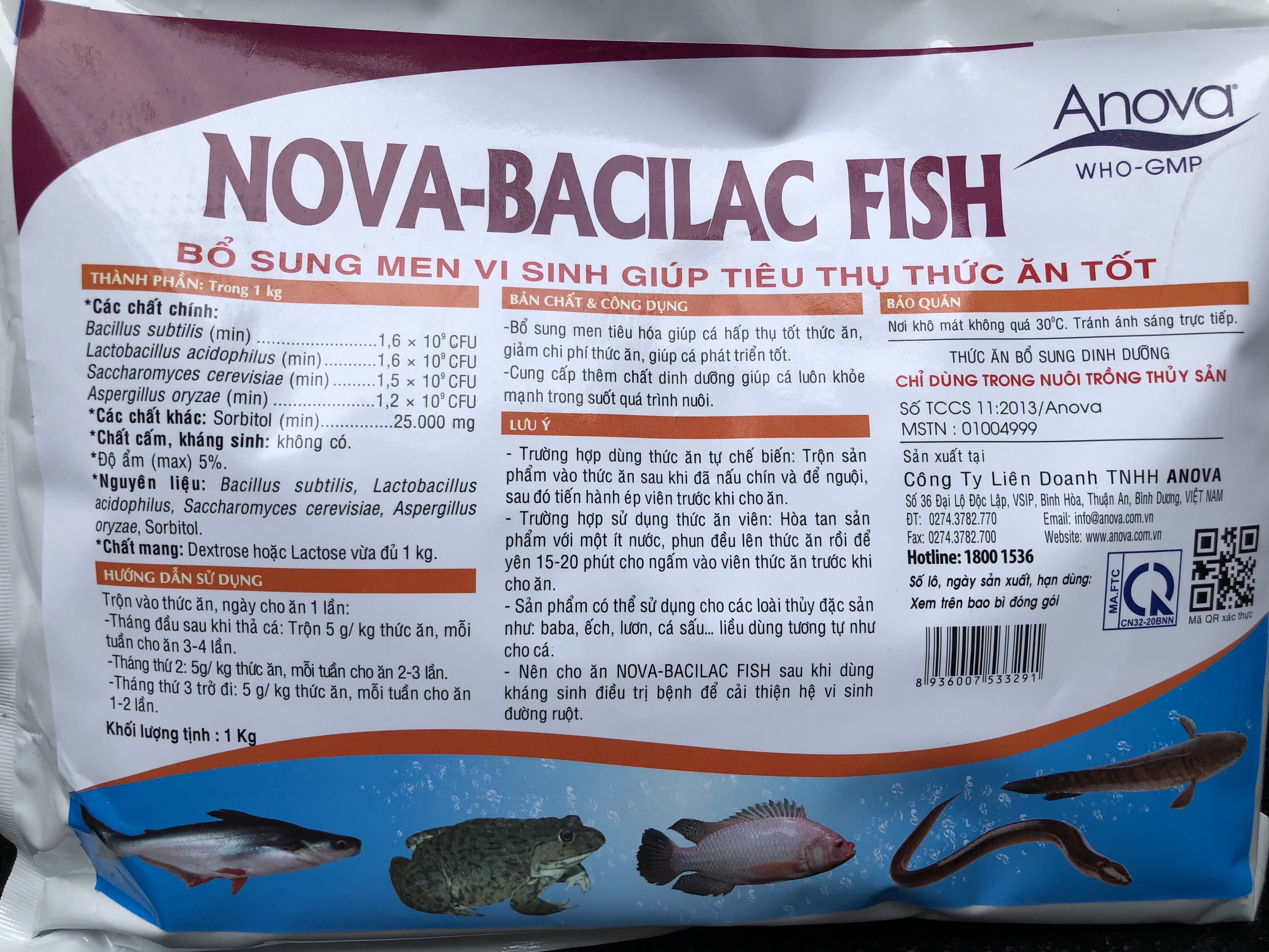 - Men vi sinh Nova Bacilac fish bổ sung các men tiêu hóa giúp cá hấp thụ tốt thức ăn, giảm chi phí thức ăn, giúp cá phát triển tốt.