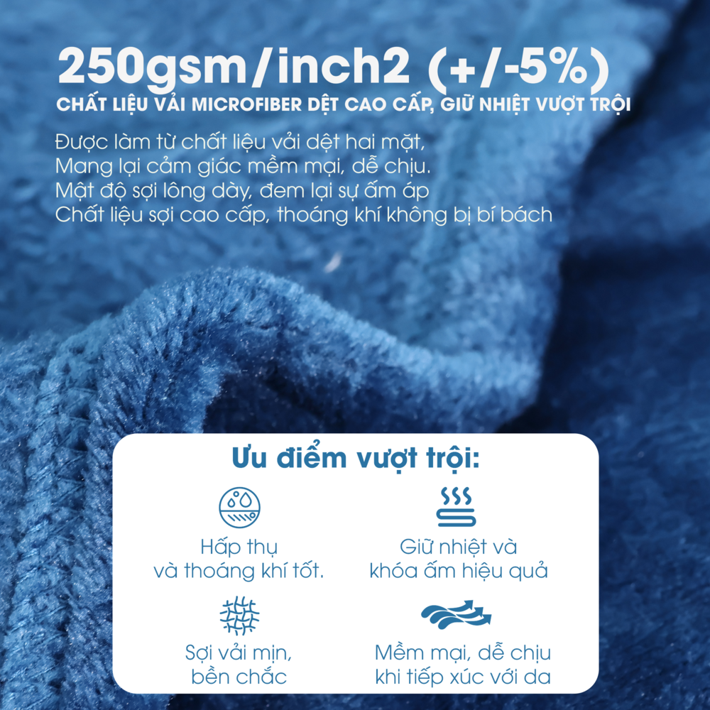 Mền tuyết NIN House màu xanh Dark Blue 1m3x2m, 1m6x2m chăn tuyết nhung microfiber  Ruột chăn 4 mùa Liên Á 220x240cm