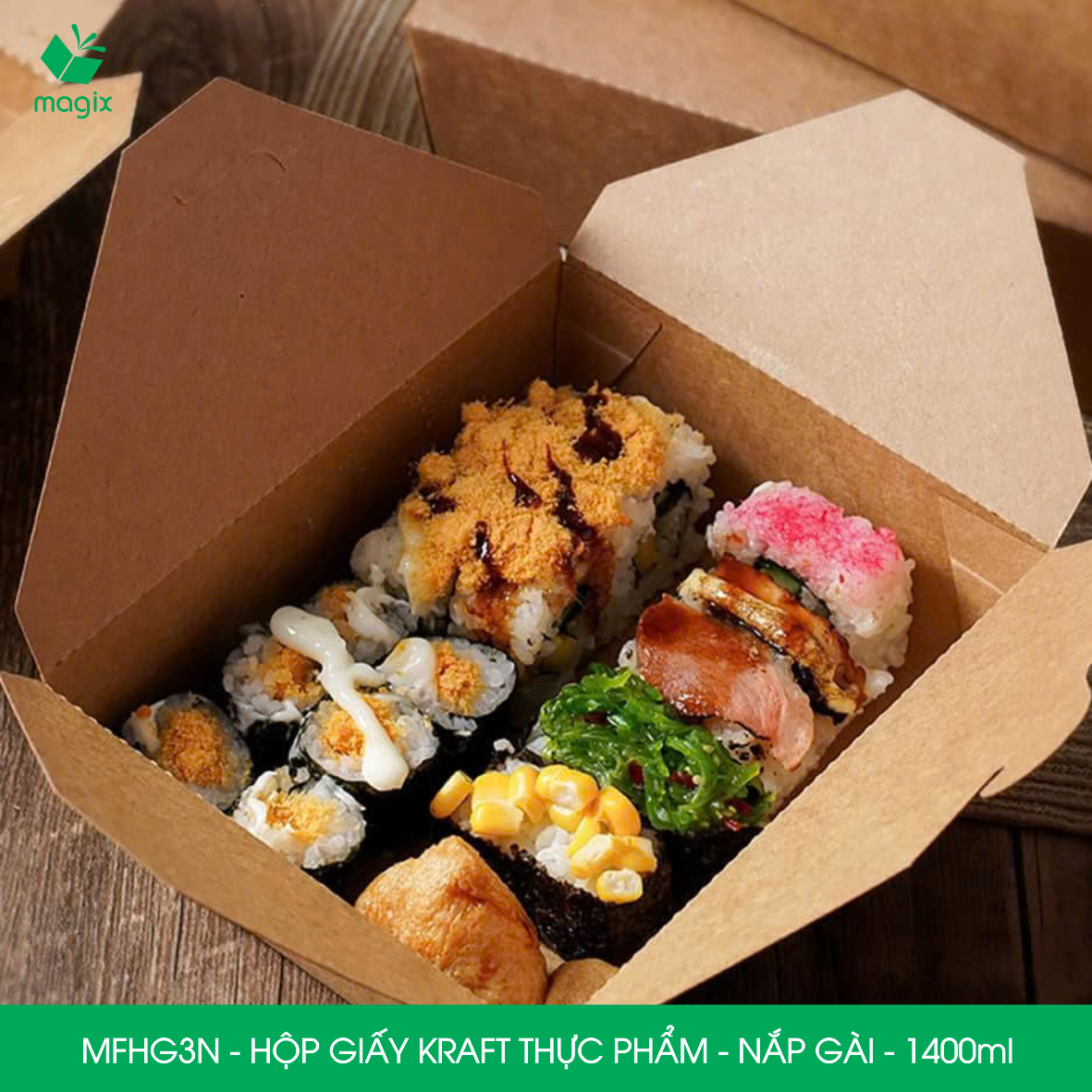ĐẶC ĐIỂM: Từ lâu, bao bì thực phẩm là một trong những yếu tố có tính liên quan mật thiết đến sức khỏe của người tiêu dùng. Hiểu được điều đó MAGIX đã dày công nghiên cứu và phát triển để cho ra mắt dòng sản phẩm hộp giấy bao bì thực phẩm nắp gài với chất liệu giấy kraft nâu.
