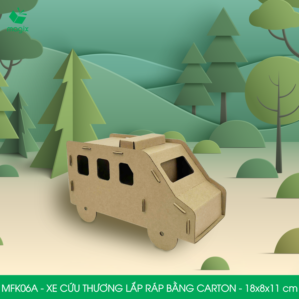 ✨ MFK06A - Xe cứu thương carton - 18x8x11 cm - Đồ chơi lắp ráp mô hình từ bìa carton cứng cao cấp