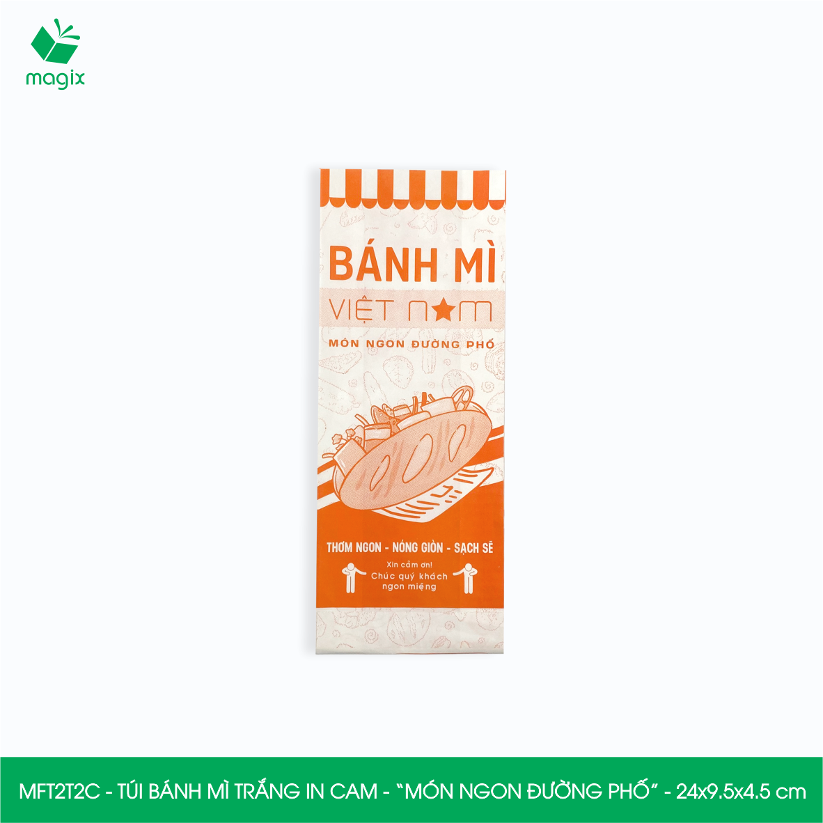 • MFT2T3C - Túi bánh mì trắng in cam - "Best street food"