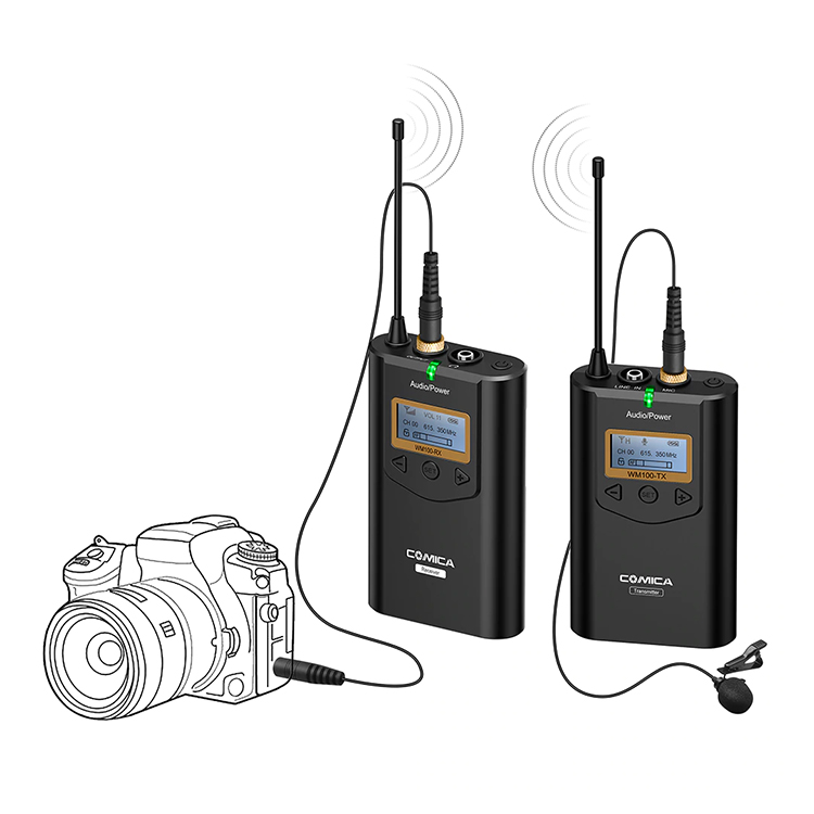 - Mic Thu Âm Comica CVM-WM100 (TX+RX) - Hàng Nhập Khẩu sử dụng microphone omni-directional và có độ nhạy cao, cho khả năng thu âm đa hướng, âm thu to và rõ. - Sóng UHF với
