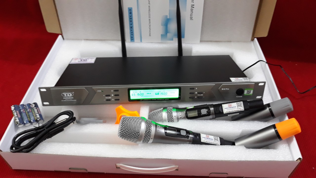(HCM) Micro không dây TD Acoustic M8 Pro - Hàng Chính Hãng 2022 Âm thanh TD Acoustic chính hãng cam kết không bán hàng giả , nếu quý khách phát hiện hàng giả shop sẽ gửi lại tiền và tặng luôn sản phẩm quý khách đã mua. Xin cảm ơn quý khác hàng đã tin tưởng và ủng hộ Âm thanh TD Acoustic chính hãng ] Micro không dây TD M8 Pro là model đầu tiên được TD sản xuất và giới thiệu tới người tiêu dùng, tiếp nối M8-Pro là các model M10- Plus, M12 và M18 có các mức giá cao hơn. với ưu điểm lớn nhất M8-Pro có mức giá cực kì hợp lý nhưng chất lượng đem lại vượt trội hơn tất cả các sản phẩm trong tầm giá. Sản phẩm chính hãng, chế độ bảo hành tốt, M8-Pro đã bán cháy hàng ngay ngày đầu mở bán. với thiết kế phổ thông mặt nhôm phay xước màu ghi hiện đại, phù hợp cho mọi không gian và dễ dàng phối ghép với các bộ dàn âm thanh. M8-Pro sử dụng 2 râu thu phát sóng, là dòng mic chuyên dùng cho gia đình và các show