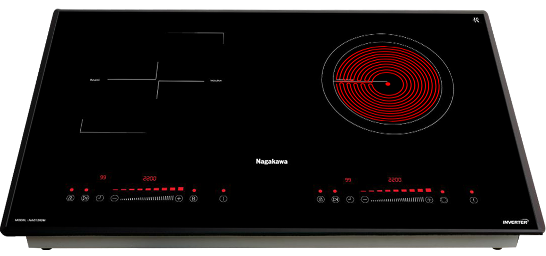 Với bếp đôi điện từ hồng ngoại Nagakawa NAG1252M, bạn hoàn toàn có thể lựa chọn chế độ hoạt động một vòng nhiệt hoặc hai vòng nhiệt.