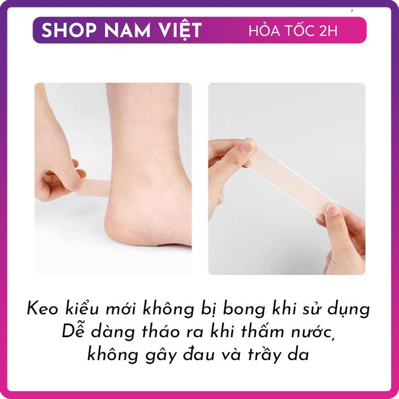 Đóng gói: 1 cuộn miếng dán bảo vệ chân 2cm x 100cm (dùng được 10-20 lần) ️ Tính năng Miếng dán bảo vệ chân khỏi việc bị phồng rộp bởi việc mang giày quá lâu.