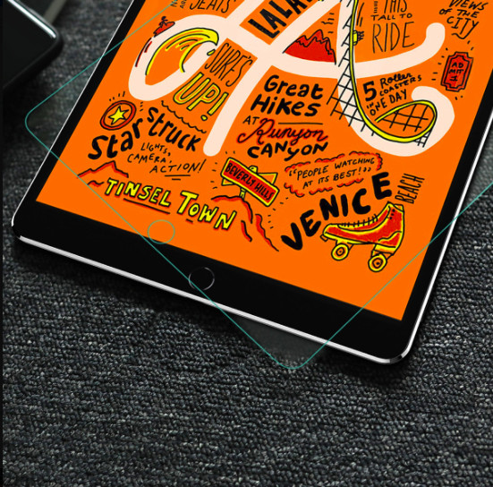 Miếng dán kính cường lực, chống vỡ màn hình cho iPad Pro 10.5. Bảo vệ màn hình một cách hoàn hảo với độ cứng lên tới 9H (gấp 20 lần tấm dán film sử dụng trong