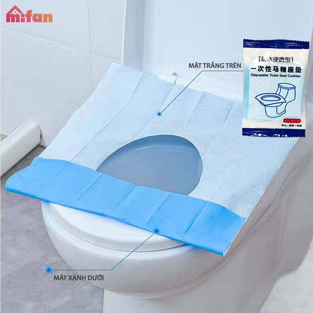MIẾNG LÓT DÁN BỆT VỆ SINH, BỒN CẦU TỰ PHÂN HỦY MIFAN - CHỐNG THẤM NƯỚC, DÍNH CHẮC CHẮN - NHỎ GỌN, VÔ TRÙNG, SẠCH SẼ BẠN CÓ BIẾT - bệt vệ sinh ẩn chứa tới hơn 3 triệu vi khuẩn và tiềm tàng nguy cơ lây lan bệnh tật. Ngồi xổm có thể gây nguy hiểm do vỡ bồn cầu Ngồi nửa người gây mỏi chân, không vững Dùng giấy lau - tốn kém, không triệt để Đó là lý do bạn cần lót bệt vệ sinh an toàn, văn minh! ------------ TÍNH NĂNG NỔI BẬT ------------- CHỐNG THẤM NƯỚC: Màng PE không thấm nước, đảm bảo vệ sinh tuyệt đối. KHÔNG CẦN CHẠM TAY: Cải tiến hơn so với các dòng khác khi bạn không cần lồng túi vào bệt mà chỉ cần dán lớp phủ lên bề mặt bồn cầu. BỀ MẶT MỀM MẠI: Mặt lót phía trên là giấy bột gỗ mềm mịn, tạo cảm giác thoải mái khi sử dụng. NHỎ GỌN - TIỆN LỢI: Kích thước nhỏ, đóng túi gọn gàng để bạn dễ dàng bỏ túi và mang đi bất kỳ đâu. BẢO VỆ MÔI TRƯỜNG: Chất liệu giấy thân thiện, không gây hại môi trường. BẢO VỆ SỨC KHỎE: Tránh tiếp xúc trực tiếp bề mặt bồn cầu, loại bỏ nguy cơ lây nhiễm bệnh do virus.   ------------ THÔNG TIN SẢN PHẨM -------------