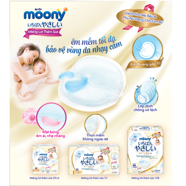 ✨Miếng lót thấm sữa Moony (108 miếng/hộp) - Nhập khẩu từ Nhật Bản