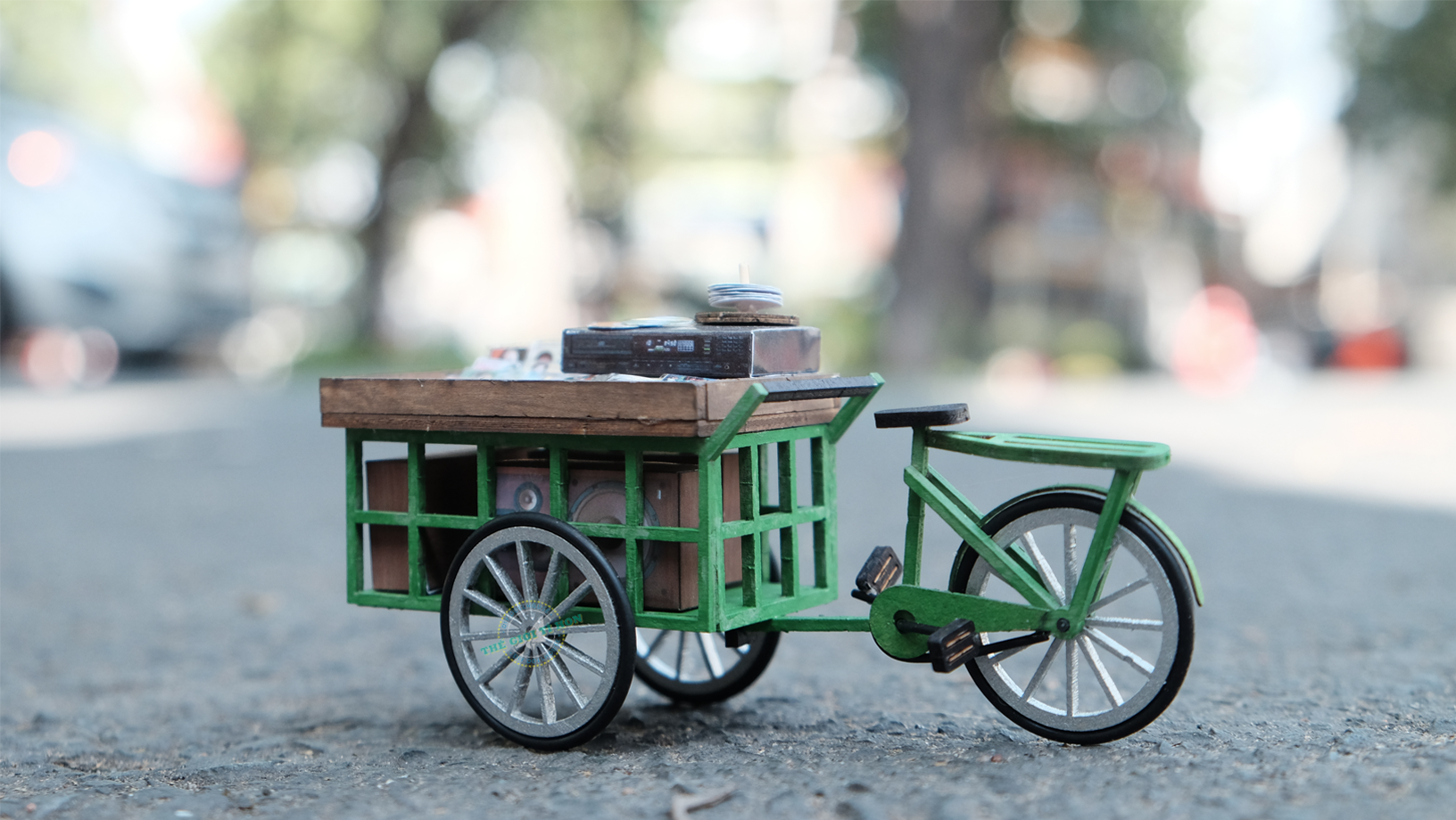 - SẢN PHẨM KHÔNG ÁP DỤNG ĐỔI TÊN BẢNG HIỆU GIÁ SẢN PHẨM CHƯA BAO GỒM THUẾ VAT, KHÁCH CẦN XUẤT VAT XIN VUI LÒNG LIÊN HỆ THẾ GIỚI TÍ HON QUA CHATBOX Mô Hình Sài Gòn Xưa Và Nay Thu Nhỏ - Xe Bán Đĩa Dạo - HR09 ** ĐƠN HÀNG XE HÀNG RONG KHÔNG ÁP DỤNG FREESHIP Cái thời internet còn chưa phát triển, muốn xem một bộ phim hay nghe nhạc… nhanh và sớm nhất chỉ còn cách mua đĩa thôi, thế là ở đất Sài Gòn thời ấy lại rộ lên một nghề mới – Bán đĩa dạo. Trên chiếc xe ba gác nhỏ đầy kín những đĩa nhạc đủ loại cũ mới và những phim hot hit thời đó, cùng với cái thùng loa nhỏ, cái đầu đĩa mini, vậy là đã đủ xịn xò để rong ruổi mưu sinh khắp phố phường Sài Gòn. Mô hình Xe Bán Đĩa Dạo Sài Gòn Thu Nhỏ - HR09 Tìm Hiểu Mô Hình Tí Hon Thông số mô hình Đánh giá độ khó Kích thước sản phẩm 12.0 x 4.0 x 6.0 CM (Dài x Rộng x Cao) Xuất xứ VIỆT NAM Cân nặng 0.2 Kg Nguyên vật liệu Gỗ, hoa cỏ khô, vải, giấy, kim loại, đèn Led, gốm sứ,nhựa,... Sản phẩm bao gồm Hộp Pin có công tắt, nguyên vật liệu lắp ráp, sách hướng dẫn. Phụ kiện làm mô hình (Mua riêng): Keo chuyên dụng + Mica Che Bụi + Bộ dụng cụ Kit...() Shop hỗ trợ lắp ráp luôn nếu bạn có nhu cầu (có phụ phí)