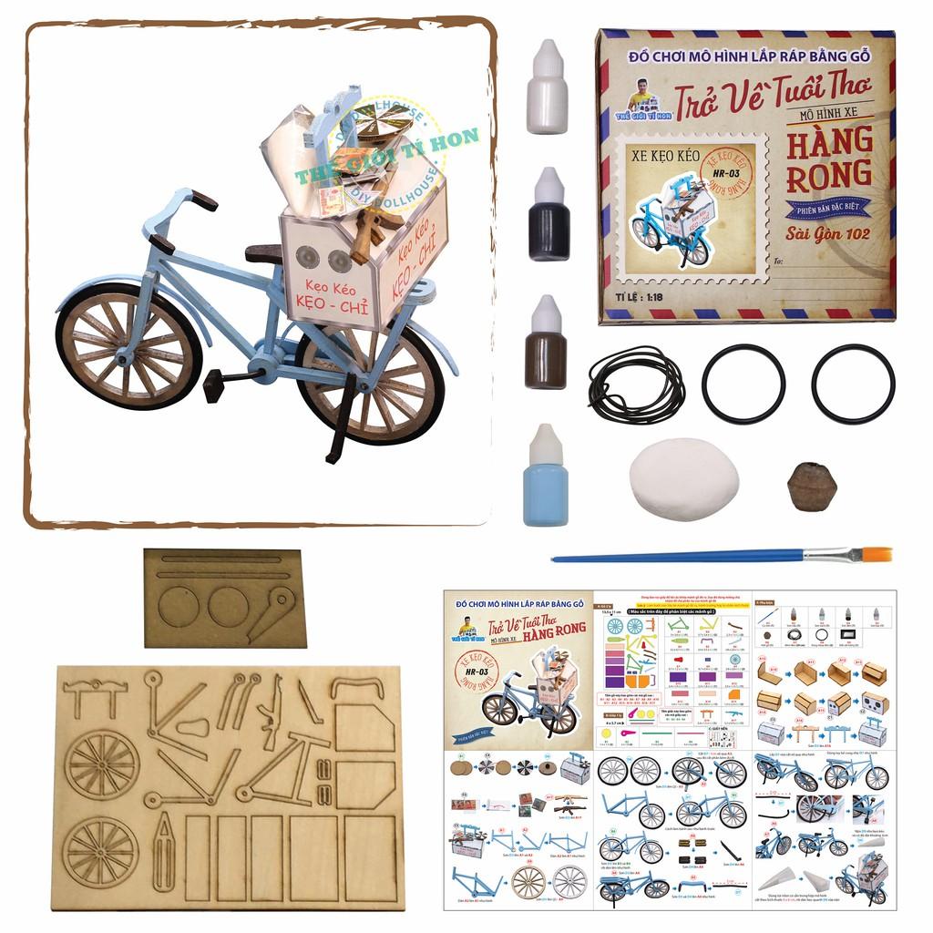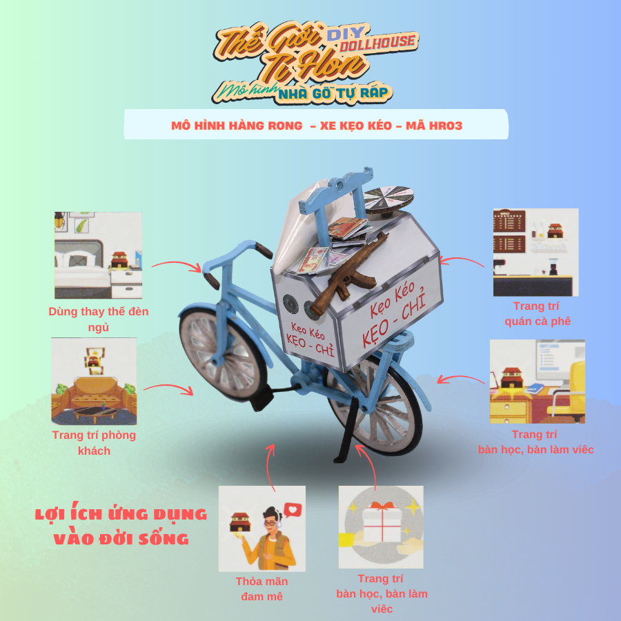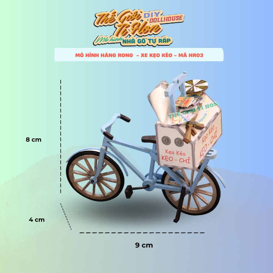 Mô Hình Xe Hàng Rong Sài Gòn Xưa Và Nay Thu Nhỏ - Thế Giới Tí Hon - Xe Kẹo Kéo - HR03 ** SẢN PHẨM CHƯA BAO GỒM KEO DÁN** Thông số mô hình