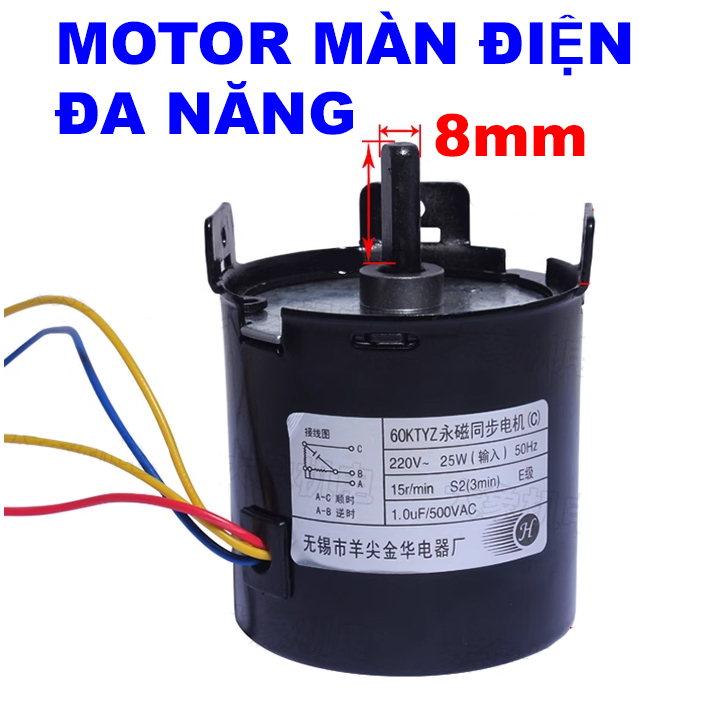 Mua tại TiktokMô tơ màn chiếu điện đa năng sử dụng được cho tất cả các hãng màn chiếu hiện nay có trên thị trường hiện nay như hãng apolo, dalite, exzen, regent, Nguồn điện: 220V Công suất: 25W / 50HZ Vòng quay: 15r/min ứng dụng thay thế cho các màn chiếu điện sử dụng lâu hoặc do vấn đề nào đó làm màn chiếu không thể kéo lên được khi bấm điều khiển
