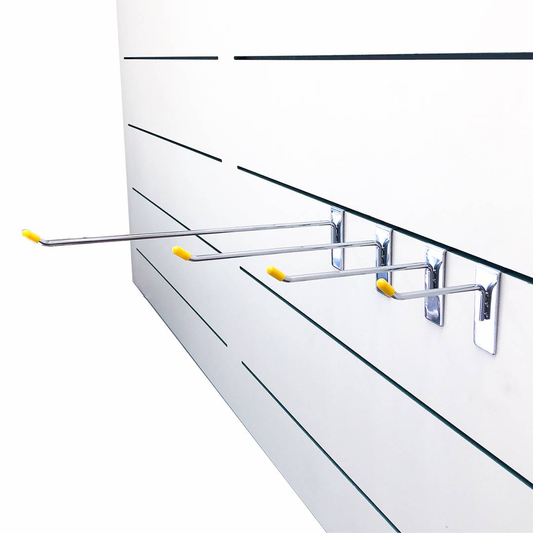 Móc đơn Slatwall là phụ kiện không thể thiếu đi kèm với bảng gỗ xẻ rãnh Slatwall & Dash Panel giúp mang đến sự gọn gàng & chuyên nghiệp cho hàng hóa trưng bày. Móc Slatwall được làm bằng thép và xi mạ niken sáng bóng cao cấp. Phù hợp sử dụng với các sản phẩm có kích cỡ từ nhỏ tới trung bình. Sản phẩm được cung cấp với 4 kích thước chiều dài là: 10cm | 15cm | 20cm | 30cm.