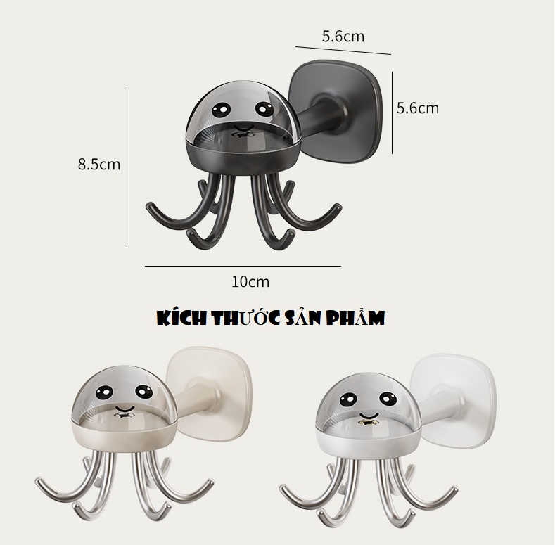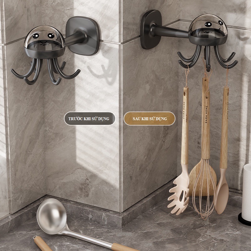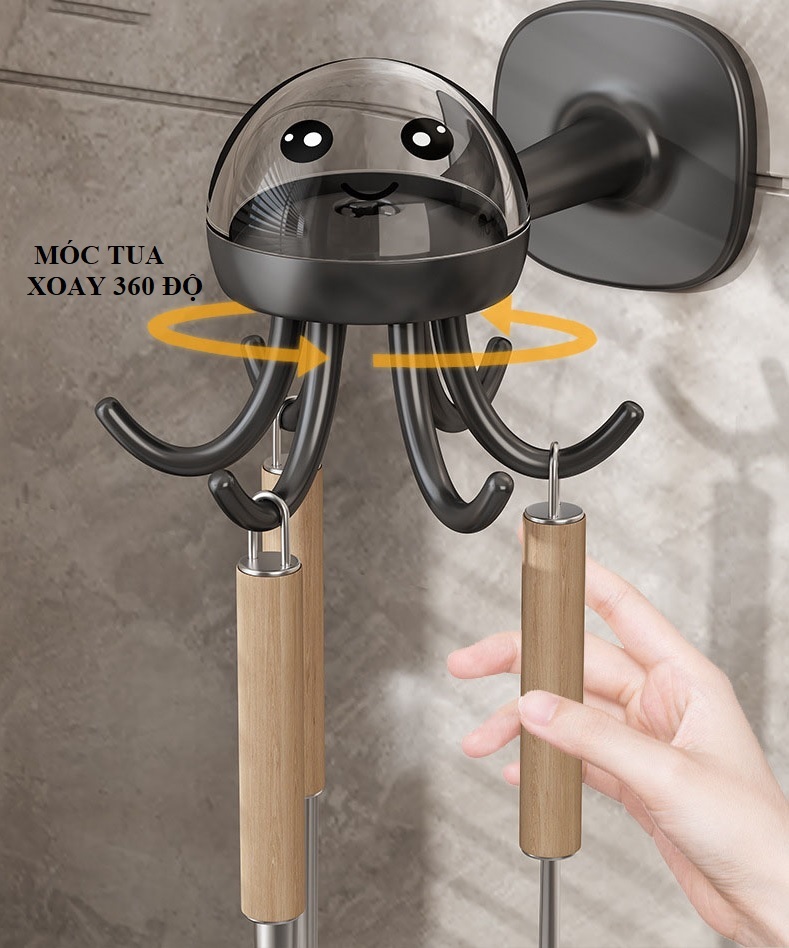 Thiết kế theo hình chú bạch tuộc con dễ thương, các móc tua có thể xoay chuyển 360 độ nên dễ dàng lấy đồ vật mình cần sử dụng 1 cách nhanh chóng