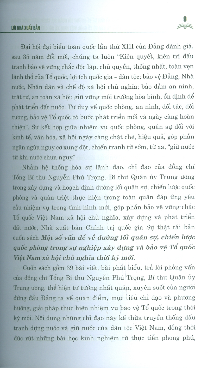 ✨MỘT SỐ VẤN ĐỀ VỀ ĐƯỜNG LỐI QUÂN SỰ, CHIẾN LƯỢC QUỐC PHÒNG TRONG SỰ NGHIỆP XÂY DỰNG VÀ BẢO VỆ TỔ QUỐC VIỆT NAM XÃ HỘI CHỦ NGHĨA THỜI KỲ MỚI - Nguyễn Phú Trọng - NXB Chính trị quốc gia sự thật