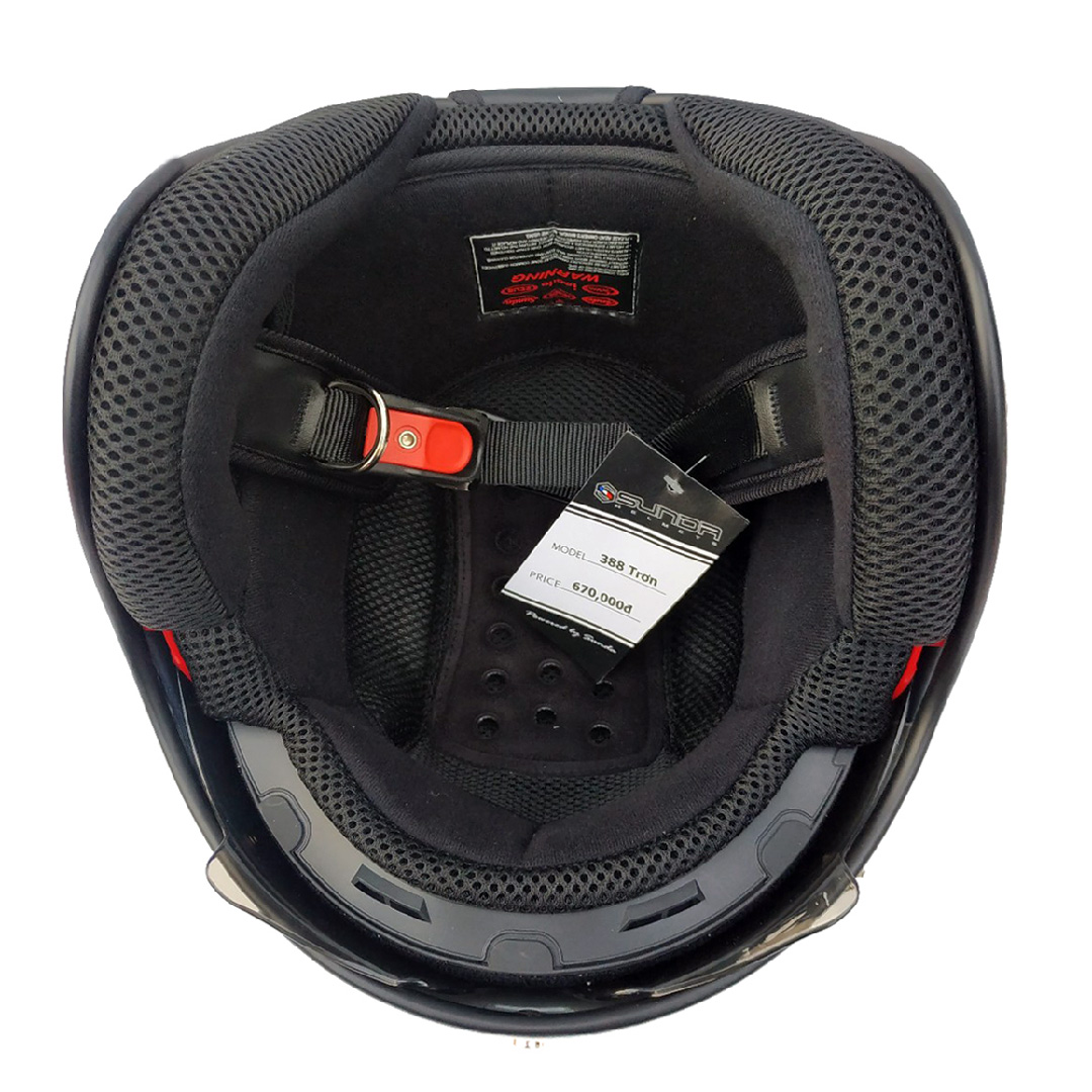 • Nón bảo hiểm ¾ SUNDA 388 cũng được trang bị lớp mút dày và êm, giúp thấm hút mồ hôi tốt, êm ái khi đội. Lớp mút này có thể tháo rời để thuận tiện cho việc giặt hoặc vệ sinh. Việc tháo lắp lớp lót cũng rất dễ dàng qua các nút gài.