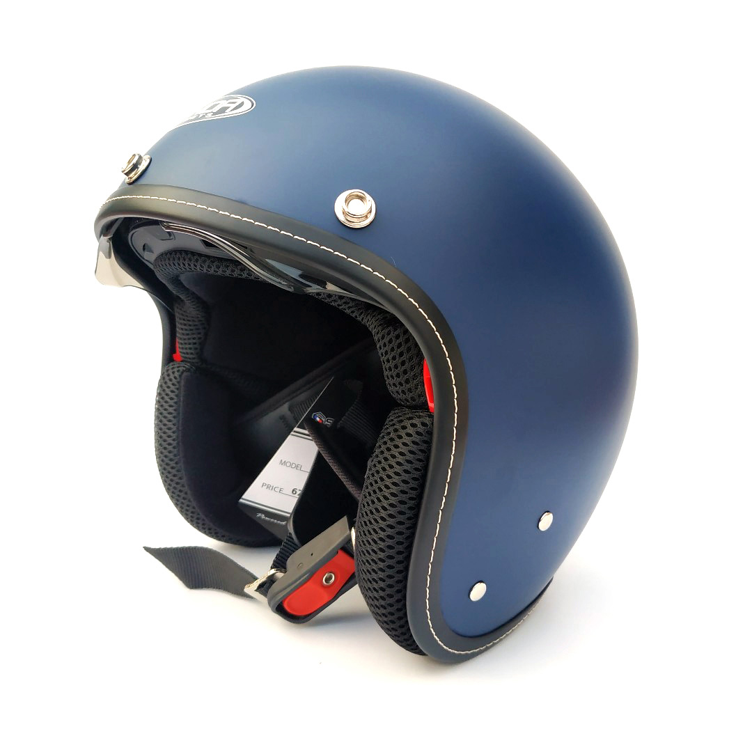 - Phong cách thiết kế: mũ kiểu 3/4 kèm kính dài, mũ được thiết kế dáng tròn, đi kèm 2 miếng ốp má, giúp tăng thêm hiệu quả bao phủ, bảo vệ khuôn mặt. -