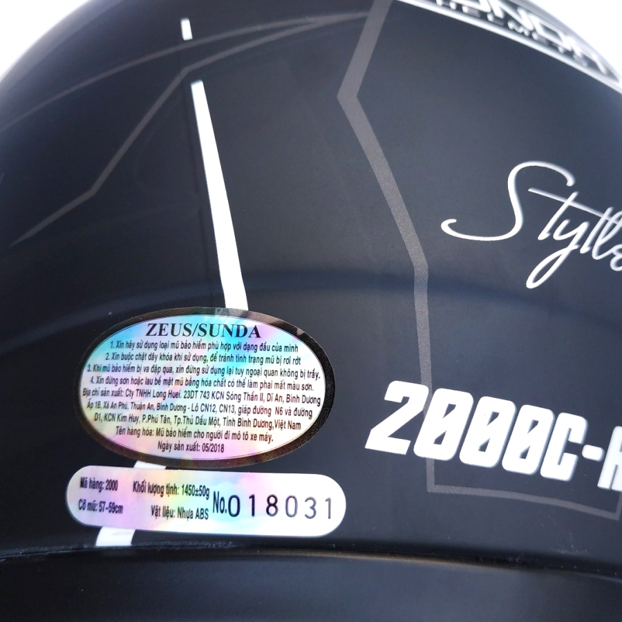 Mũ bảo hiểm fullface chính hãng Sunda 2000c đen nhám sọc trắng là sản phẩm được cải tiến từ mẫu Andes/Sunda 2000A vốn được sản xuất để xuất khẩu phục vụ chủ yếu cho thị trường nước ngoài, nơi thường có form đầu lớn hơn người Việt Nam. Sunda 2000c được thiết kế đơn giản hơn, tinh giảm bớt 1 lỗ thông gió ở chính giữa của mũ, nhưng vẫn giữ 2 lỗ thông gió lớn 2 bên. Các lỗ thông gió bên trong lớp xốp để dẫn gió vào bên trong mũ được bố trí hợp lý xung quanh đầu đảm bảo người sử dụng luôn cảm thấy thoải mái nhất khi sử dụng kể cả khi phải di chuyển trong một thời gian dài. Nón được thiết kế nhỏ gọn hơn, lòng nón sâu, phù hợp với cỡ đầu phổ biến của người Việt Nam trưởng thành (Mũ chỉ có 1 size duy nhất). Nón cũng có màu sắc trang nhã hơn so với phiên bản gốc dành cho thị trường nước ngoài. Sunda 2000c là sản phẩm có độ bền cao, chịu được va đập tốt, thiết kế thời trang thông minh, bảo vệ an toàn trên mỗi hành trình của bạn. Sản phẩm giúp triệt tiêu ngoại lực tác động bên ngoài vào mũ, hạn chế tối đa tổn thương đến đầu khi có va chạm mạnh xảy ra. Mũ được thiết kế cho người đam mê tốc độ, có kính chắn gió rất tiện lợi và an toàn cho người đội. Kính được làm từ vật liệu chất lượng cao, đã qua xử lý đặc biệt, cho góc quan sát rộng, hình ảnh rõ nét, trung thực, không bị chói đèn, có khả năng chống tia UV, chắn gió, để bạn tập trung lái xe. Mũ bảo hiểm fullface Sunda 2000C tem với vỏ mũ được sản xuất từ chất liệu nhựa ABS có tính năng chịu va đập mạnh, lớp xốp bên trong mũ dày, vừa vặn bám chặt với phần vỏ giúp triệt tiêu hoàn toàn xung lực mạnh từ bên ngoài tác động vào, giảm chấn hiệu quả tối đa, ôm trọn vòng đầu. Do đó, bảo vệ tốt và giảm tối đa các chấn thương đầu khi không may xảy ra va chạm. Trọng lượng được phân tán đều, không gây cảm giác nặng và đau đầu, tạo cho người đội cảm giác thoải mái khi sử dụng. Phần xốp phía trong mũ dày làm bằng EPS 100% chính phẩm và được bọc bởi một lớp đệm êm, có khả năng hấp thu xung lực cao. Mũ sử dụng lớp vải lót kháng khuẩn, có khả năng thấm hút cao, giúp thoáng khí tốt, không gây ra các bệnh về da đầu và tóc. Ngoài ra, mũ còn được trang bị khóa inox chắc chắn và dây quai chịu lực cực mạnh, độ dài linh động phù hợp với nhiều người. Lớp lót mũ được thiết kế để có thể tháo lắp dễ dàng, nhanh chóng. Bạn có thể dễ dàng tháo rời lớp lót ra để giặt hoặc vệ sinh. Mũ thiết kế nhiều lỗ thông gió phía trước và sau mũ, các lỗ này có thể đóng mở được, đảm bảo bạn luôn cảm thấy thoải mái và dễ chịu khi sử dụng. Mũ có kiểu dáng thời trang cùng màu sắc tinh tế, trang nhã, thể hiện phong cách thời trang cá tính của bạn. Mũ phù hợp cho người có vòng đầu từ 55-59 cm - tương đương size L, thích hợp với người có vòng đầu trung bình.   Hướng dẫn xác định cỡ mũ phù hợp: Vòng 1 sợi dây quanh đầu, phía trên lông mày và tai khoảng 2cm. Xiết sợi dây sao cho ôm vừa đủ thoải mái lấy đầu và ghi lại số đo đó. Lặp lại như vậy để tìm được số đo mà bạn thấy đầu dễ chịu nhất. Đó chính là size đầu của bạn. So sánh với kích cỡ mũ để lựa chọn size mũ phù hợp. Thông tin về thương hiệu: