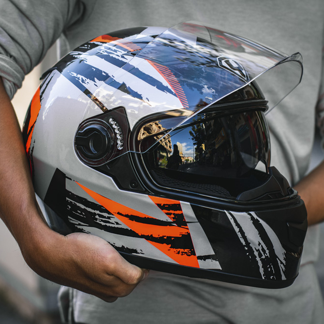 Kính chắn của mũ Yohe 970 Mũ bảo hiểm Fullface Yohe 970 có kính chắn ở phía ngoài và có thể nâng cấp thêm kính màu tối chống nắng ở phía bên trong nón, giúp tăng khả năng quan sát cho người dùng khi đi trong điều kiện nắng chói. Kính trong suốt bên ngoài kết hợp với kính màu tối bên trong thích hợp cho cả khi đi đường ngày hay đêm