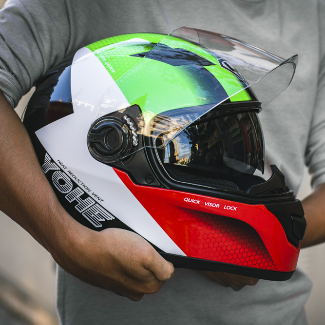 Mũ bảo hiểm Fullface Yohe 970 Hai Lớp Kính có thiết kế năng động, hiện đại, tương đối nhỏ gọn. Đặc biệt màu sắc của mũ bảo hiểm 2 lớp kính fullface Yohe 970 đa dạng, cách phối màu sơn mạnh mẽ, đầy cá tính vừa đảm bảo an toàn vừa mang lại vẻ ngoài chất lừ cho người đội.