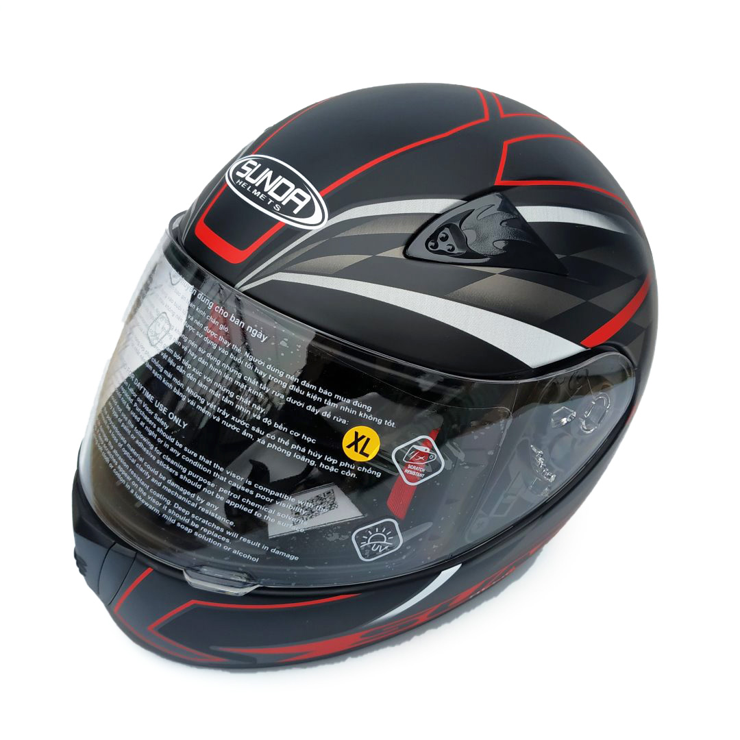 ✨Mũ bảo hiểm fullface Sunda 2000c đen nhám tem đỏ