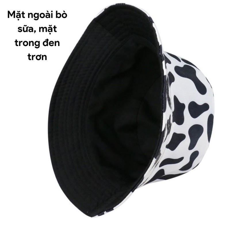 Mũ vành 2 mặt, bucket hat họa tiết bò sữa dễ thương