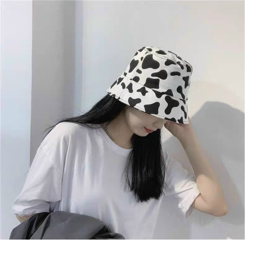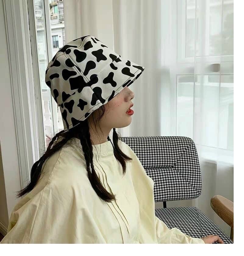 - Chất liệu: Thô - Màu sắc: Đen pha trắng - Họa tiết: Bò sữa, vằn - Size: Freesize thích hợp với mọi dáng người - Mũ với chất liệu thô, chống nắng tốt, thấm