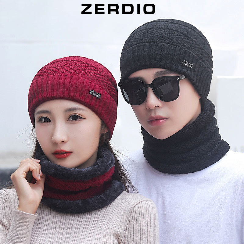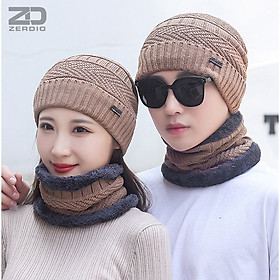Mũ len kèm khăn ống quàng cổ lót lông dày dặn giữ ấm cho mùa đông