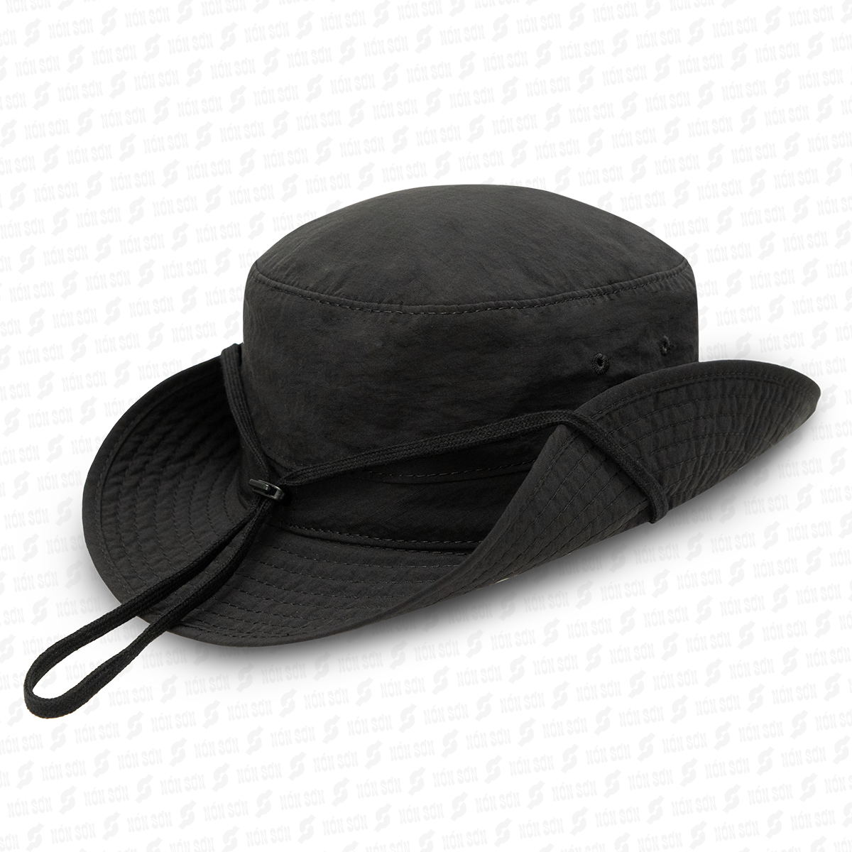 Vải Kaki dày dặn nhưng không nóng vì là 100%cotton. Có dây đeo không lo gió bay. Nút bấm kim loại 2 bên vành nón để bẻ lên cho ngầu luôn. Shop nhận thêu logo