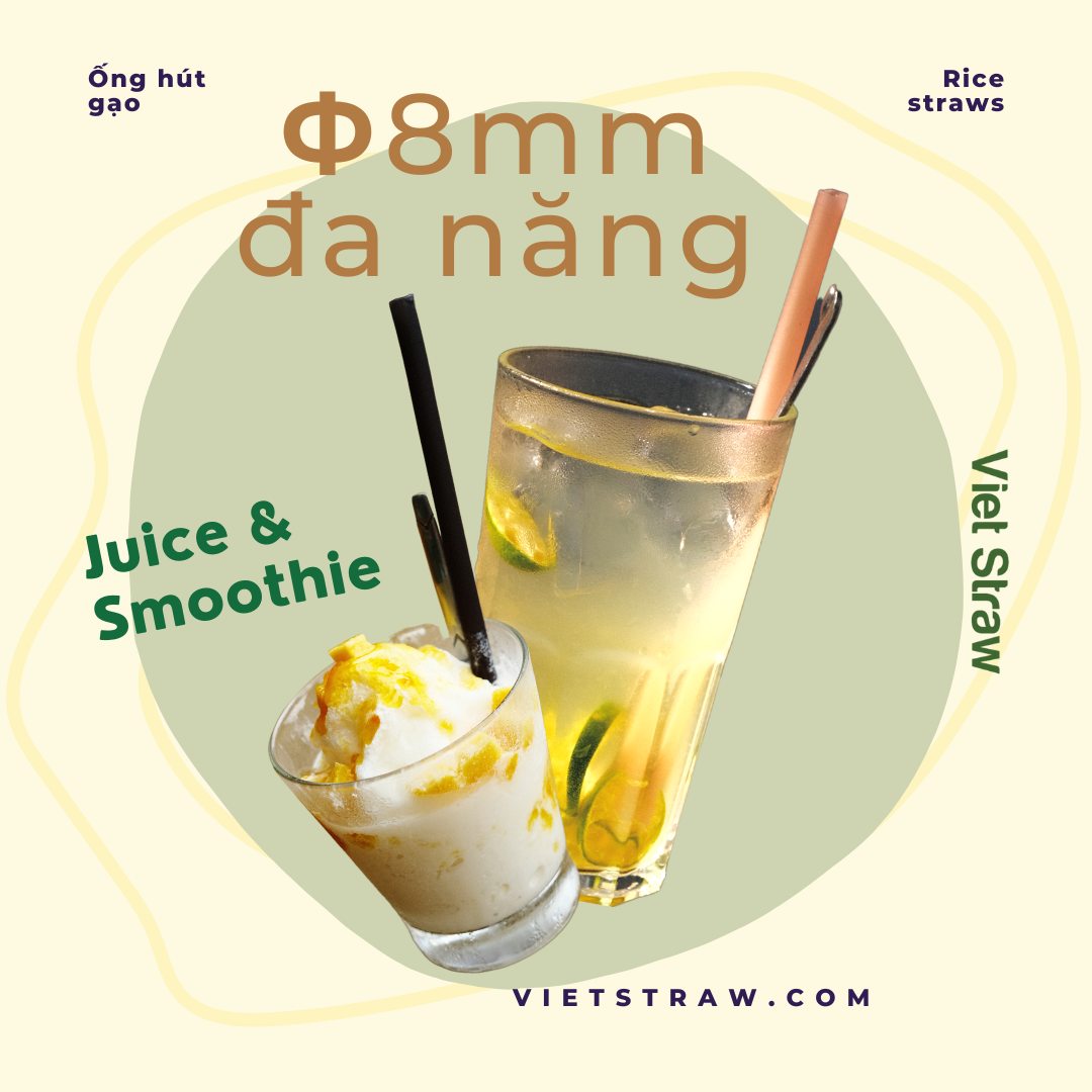 Ống hút gạo của chúng tôi có đủ kích cỡ như ống hút nhựa thông thường, thành phần chính là gạo và các loại bột ngũ cốc khác giúp ống có độ dai và đàn