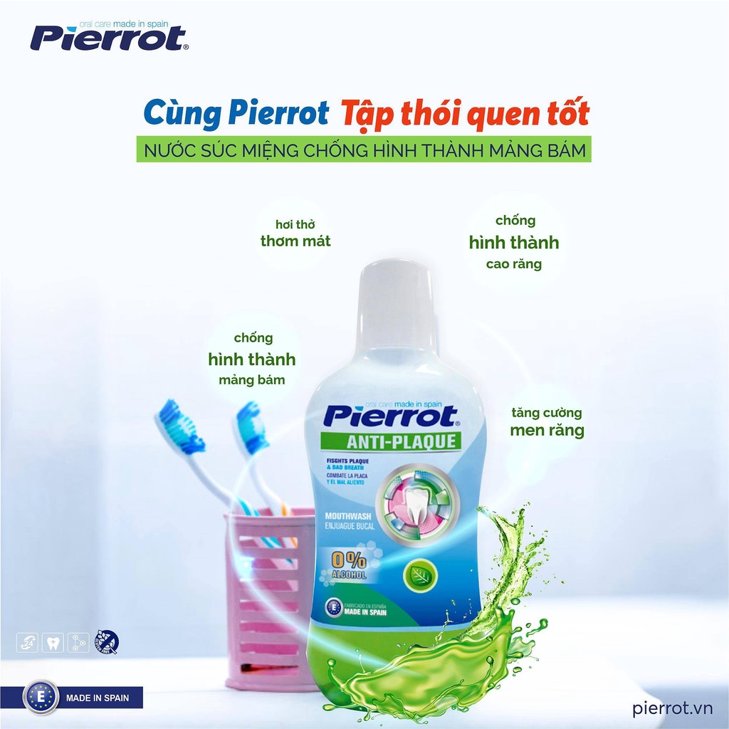 ✨[ Mua 2 tặng 1 chỉ kẽ răng ] Nước súc miệng chống hình thành mảng bám PIERROT 500ml
