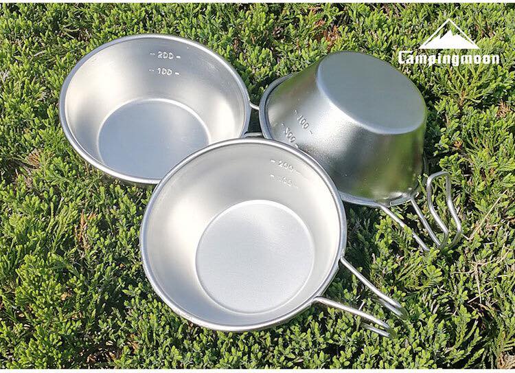- Trọng lượng: 92g Chén ăn dã ngoại Campingmoon được làm bằng Thép không rỉ 304 an toàn cho sức khoẻ, thiết kế có quai treo có thể treo móc lên ba lô, túi xách, tiện dùng đi cắm trại dã ngoại. Trọng lượng nhẹ và có thể xếp chồng lên nhau tiết kiệm diện tích.
