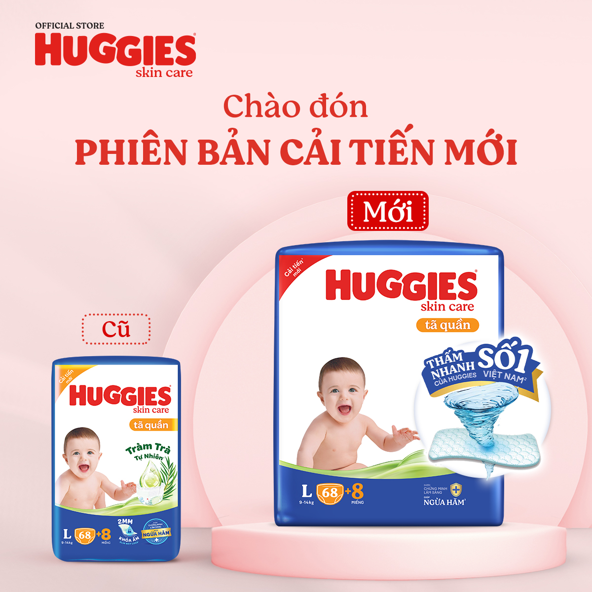 ✨[MUA 4 TẶNG 1] Tã quần Huggies Skincare Mega Jumbo XL84+4 Mẫu Dày 2mm