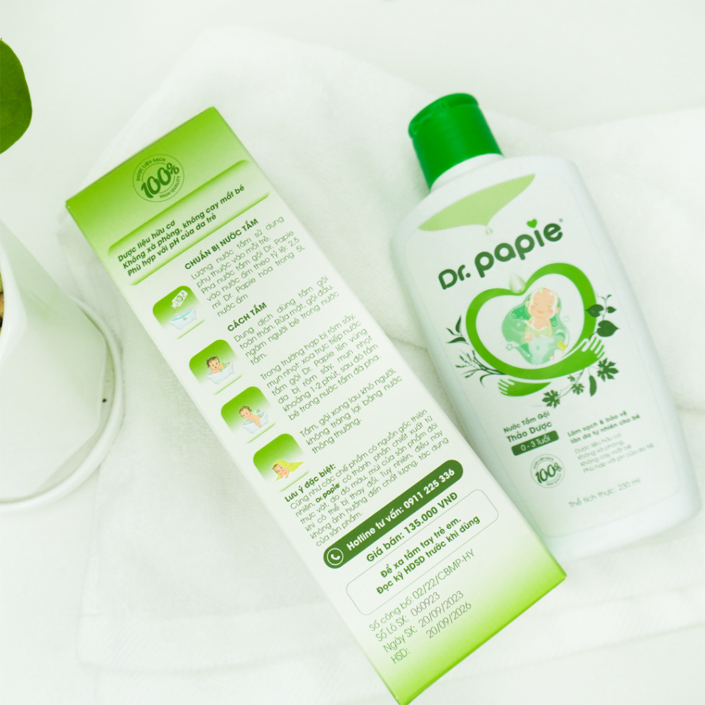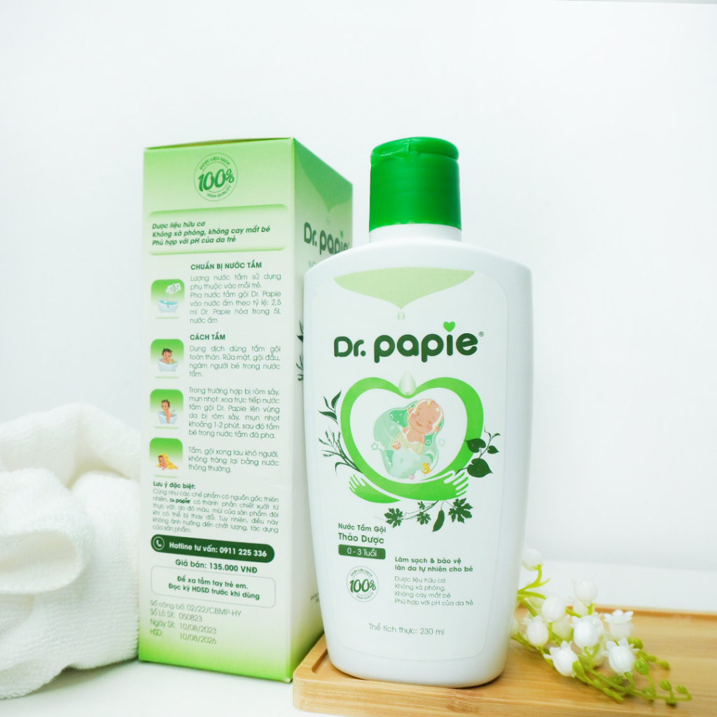 DUNG TÍCH: Chai 230ml Nước tắm thảo dược Dr.Papie