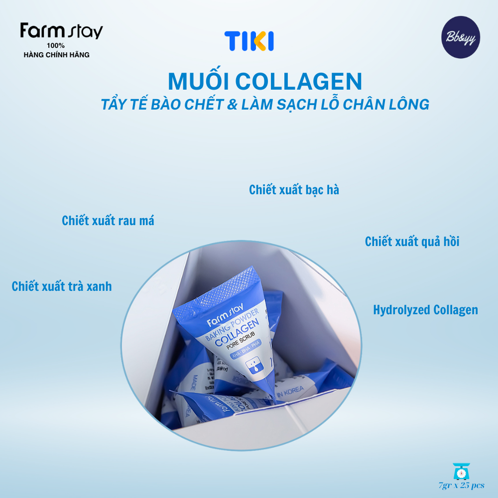 MUỐI COLLAGEN TẨY TẾ BÀO CHẾT & LÀM SẠCH LỔ CHÂN LÔNG _ BAKING POWDER COLLAGEN PORE SCRUB Công dụng: Trong bột collagen có 3 thành phần quan trọng AHA - BHA - PHA