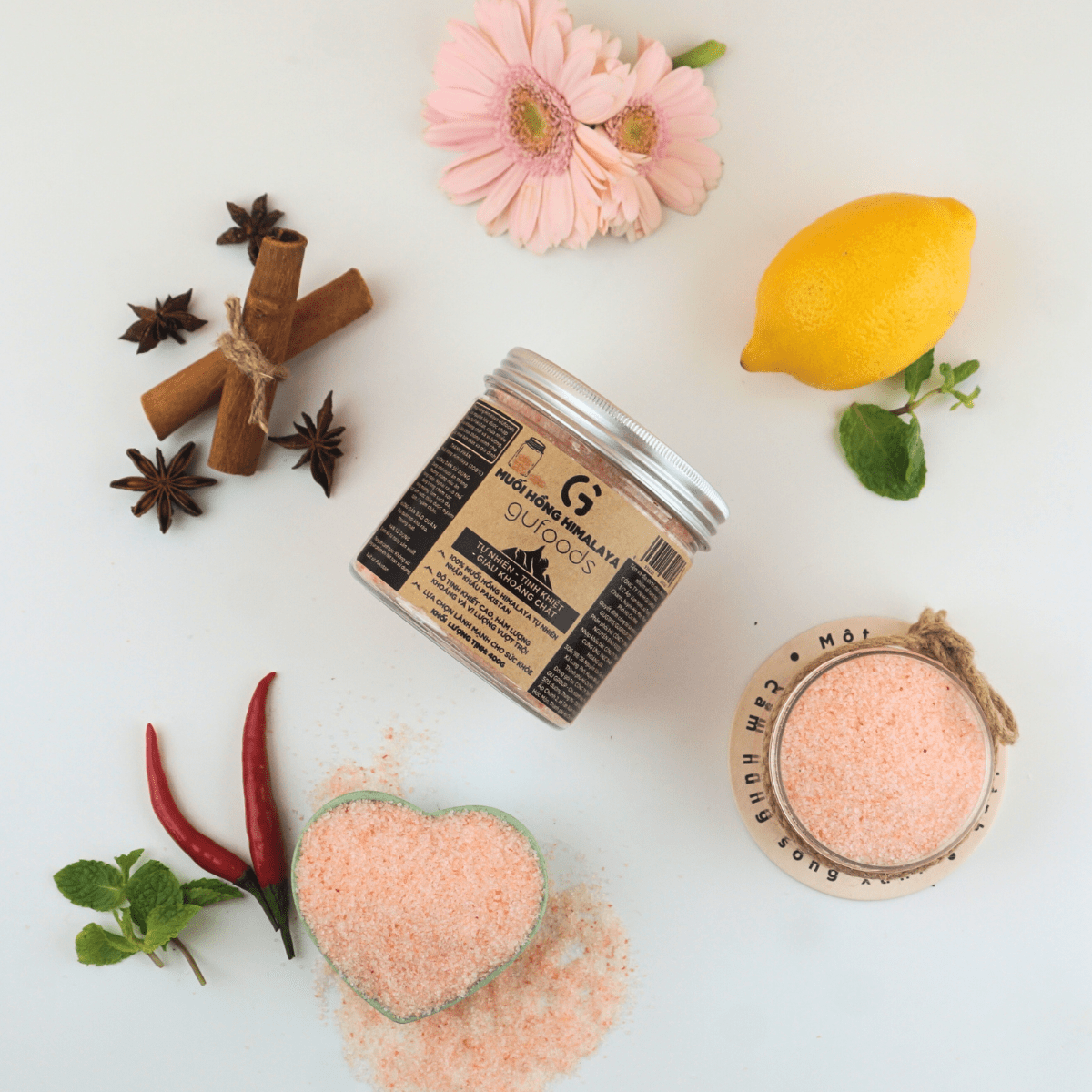 GIỚI THIỆU Muối hồng Himalaya là loại muối giàu khoáng chất, không qua quá trình tinh chế nên giữ được trọn vẹn các khoáng chất vi lượng có lợi cho sức khoẻ. Muối hồng Himalaya GUfoods không chỉ là một gia vị tự nhiên cho món ăn thêm phần dinh dưỡng, mà còn là nguyên liệu mang đến nhiều lợi ích cho sắc đẹp và sức khoẻ.   ĐẶC ĐIỂM NỔI BẬT ✓ Thành phần tự nhiên, tinh khiết ✓ Không qua tinh chế, không chứa phụ gia ✓ Giàu khoáng chất vi lượng, hỗ trợ cân bằng pH trong cơ thể  ✓ Có thể dùng bổ trợ cho muối ăn trong nấu ăn hàng ngày ✓ Nguyên liệu sử dụng trong làm đẹp, tẩy tế bào chết, ngâm chân,... ✓ Lựa chọn lý tưởng cho lối sống healthy, eat clean, thực dưỡng ✓ Màu sắc của muối hồng có thể có độ đậm nhạt khác nhau tuỳ vào đợt khai thác và vị trí của mỏ muối được khai thác.   THÀNH PHẦN 100% muối hồng Himalaya   GIÁ TRỊ DINH DƯỠNG Giống như muối thường, muối hồng Himalaya chủ yếu gồm natri clorua (NaCl). Tuy nhiên, sự quá trình hình thành kéo dài hàng triệu năm và quy trình khai thác tự nhiên đã giúp cho muối hồng Himalaya có nhiều khoáng chất và nguyên tố vi lượng khác.   LỢI ÍCH SỨC KHỎE
