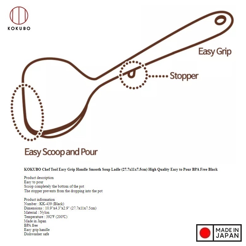 Công dụng:Chuyên dùng để múc canh, súp hay các loại đồ xào ướ không làm trầy xước các bề mặt của xoong chảo ○ Tay cầm tiện dụng, dễ dàng cầm nắm & thao tác, đem lại sự tiện lợi cho người dùng.
