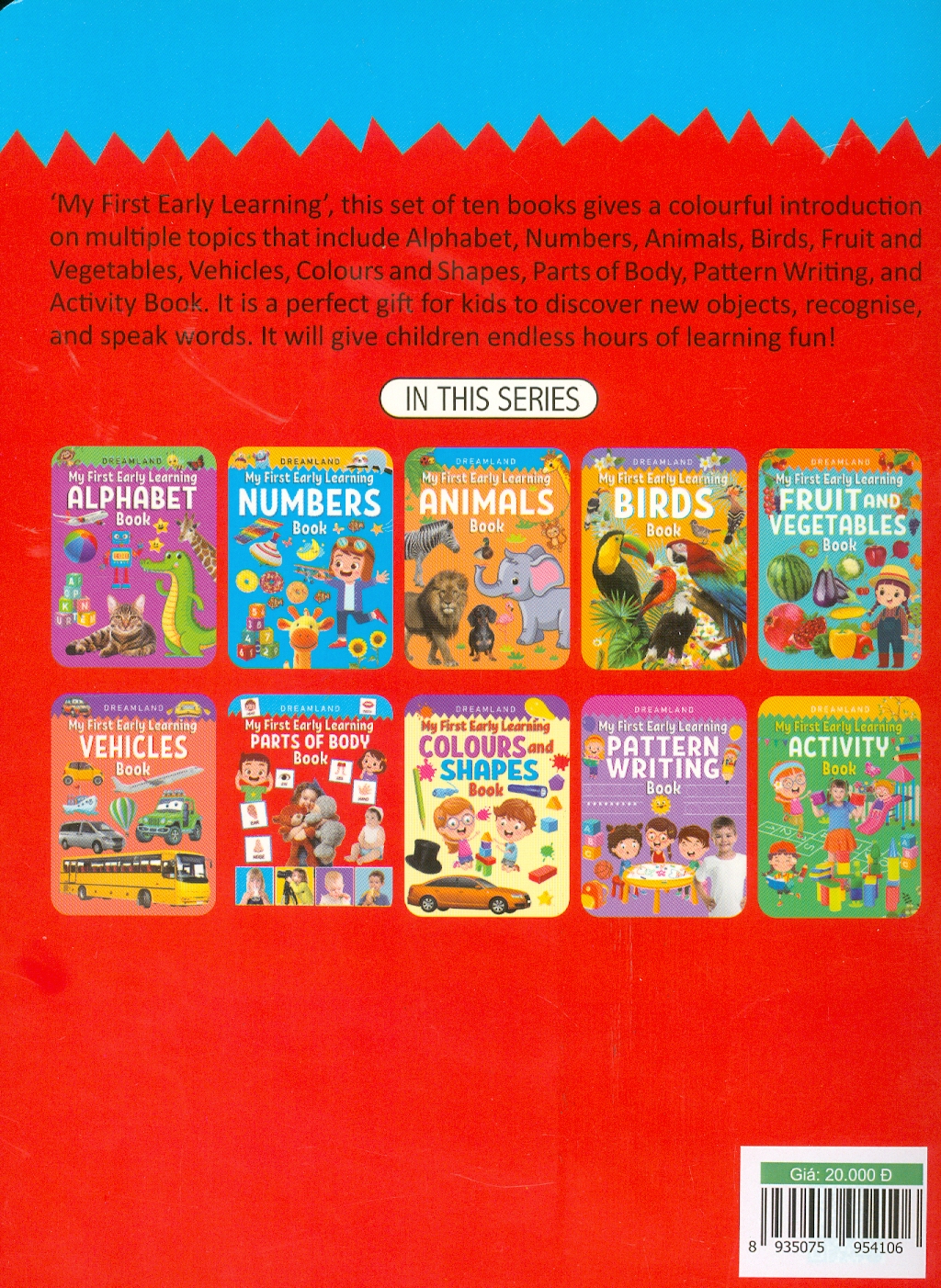 Mua tại Tiktok'My First Early Learning' gồm 10 cuốn sách:- Bảng chữ cái, Số, Động vật, Chim, Trái cây và Rau củ, Màu sắc và Hình dạng, Các bộ phận của Cơ thể, Viết theo Mẫu và Hoạt động. Bộ sách vui nhộn và mang tính giáo dục với những hình ảnh dễ thương sống động này là sự lựa chọn tốt nhất cho trẻ em.
