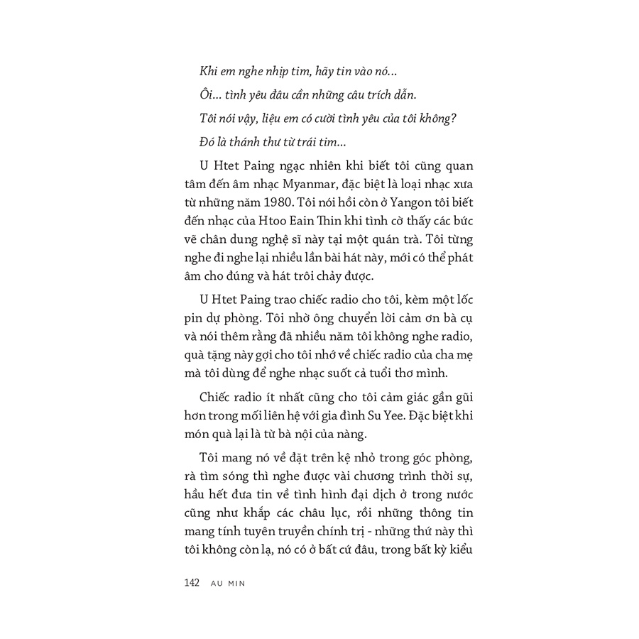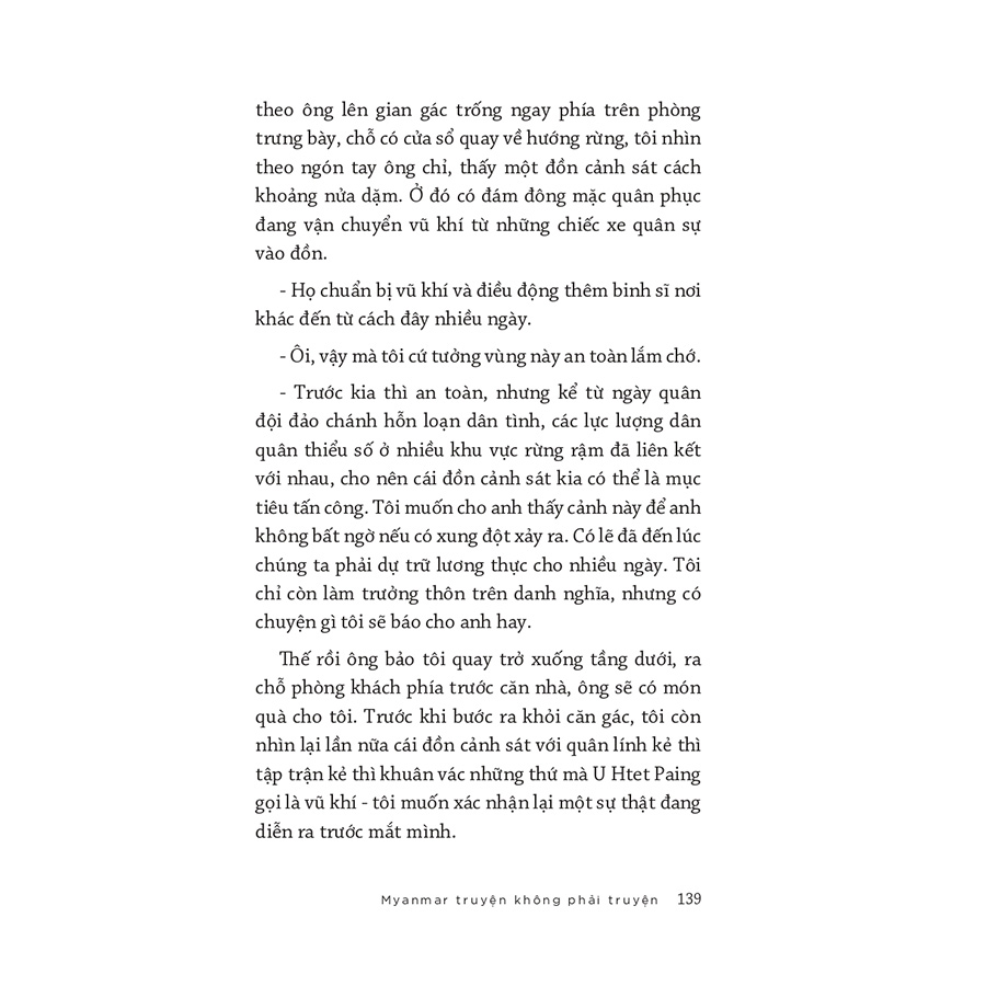 “Myanmar truyện không phải truyện” lấy bối cảnh thời kỳ có nhiều biến động của đất nước Myanmar: cuộc đảo chính của giới cầm quyền quân sự cũng là thời điểm đại dịch Corona hoành hành khủng khiếp. Nhưng kỳ diệu thay, ta không thấy tác giả mô tả cảnh chiến tranh, biểu tình phản kháng của các phe phái dẫn đến đổ máu hay cảnh chết chóc bi thương, mà ngược lại, toàn bộ tác phẩm toát lên tình yêu bình dị đầy thơ mộng nơi thị trấn K, một thị trấn nhỏ thuộc bang Shan, phía đông bắc đất nước này, nơi tác giả đã sống, đã yêu, đã hoà nhập với những người bản địa chất phác.