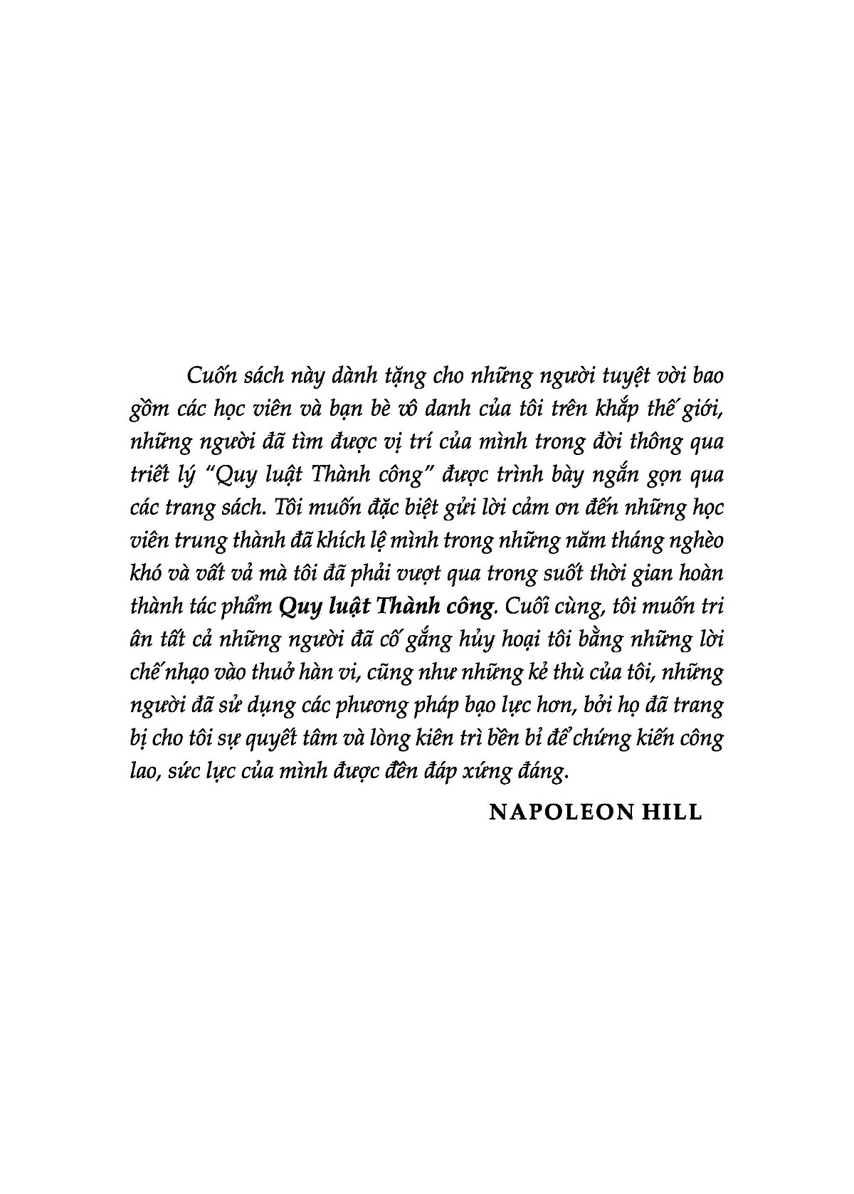 Quy luật thành công là triết lí kinh điển về Thành công học mang ý nghĩa xuyên suốt thời đại, được tổng kết từ thành quả nghiên cứu trong suốt hơn 20 năm và kinh nghiệm thực tiễn của Hill. Còn “Nấc thang kì diệu dẫn tới thành công” đã cô đọng các quan điểm nổi bật và lựa chọn những phương pháp điển hình về triết lí Quy luật thành công được thể hiện trong 8 cuốn sách cần đọc của ông (bao gồm: Think and grow rich, Outwitting the Devil, Success Through A Positive Mental Attitude, The Law of Success, The Master Key to Riches, Grow Rich! with Peace of Mind, Napoleon Hill’s Golden Rules: The Lost Writings, How to Raise Your Own Salary), đồng thời chọn lọc những tinh túy trọn vẹn của 17 Quy luật thành công rất nổi tiếng này. Có thể coi đây là tác phẩm tinh hoa về tư tưởng Thành công học của Napoleon Hill.