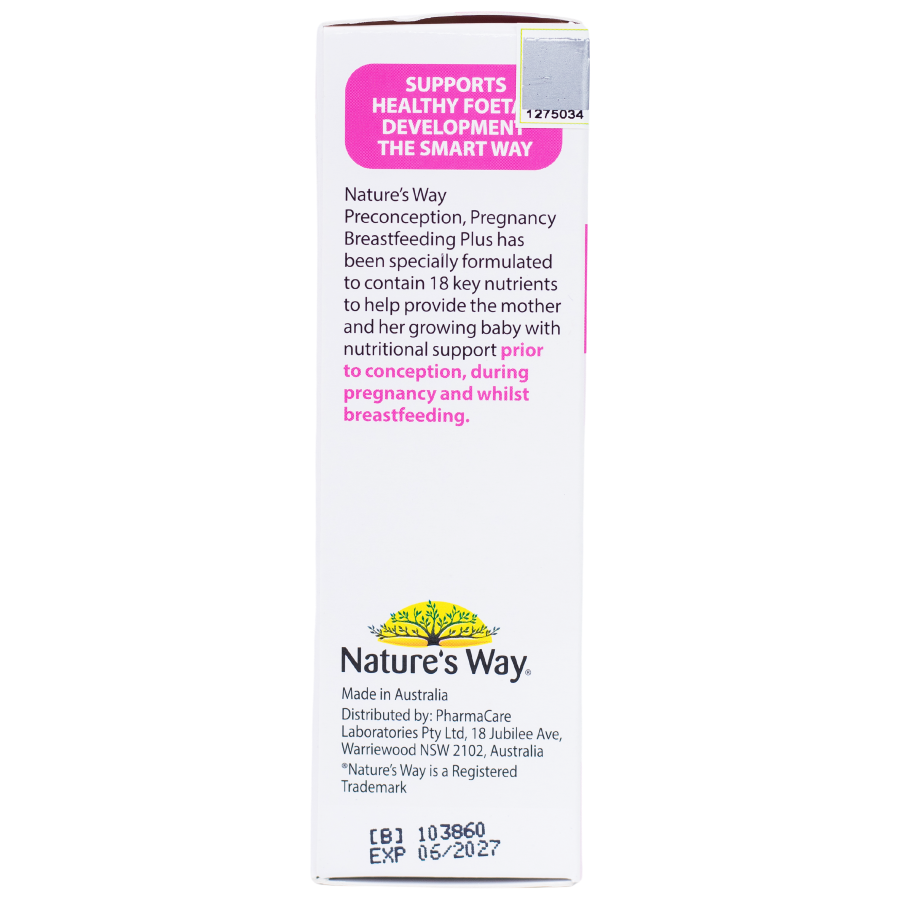 Nature's Way PreConception Pregnancy Breastfeeding Plus - Bổ sung vitamin tổng hợp cho bà bầu (Hộp 3 vỉ x 10 viên)