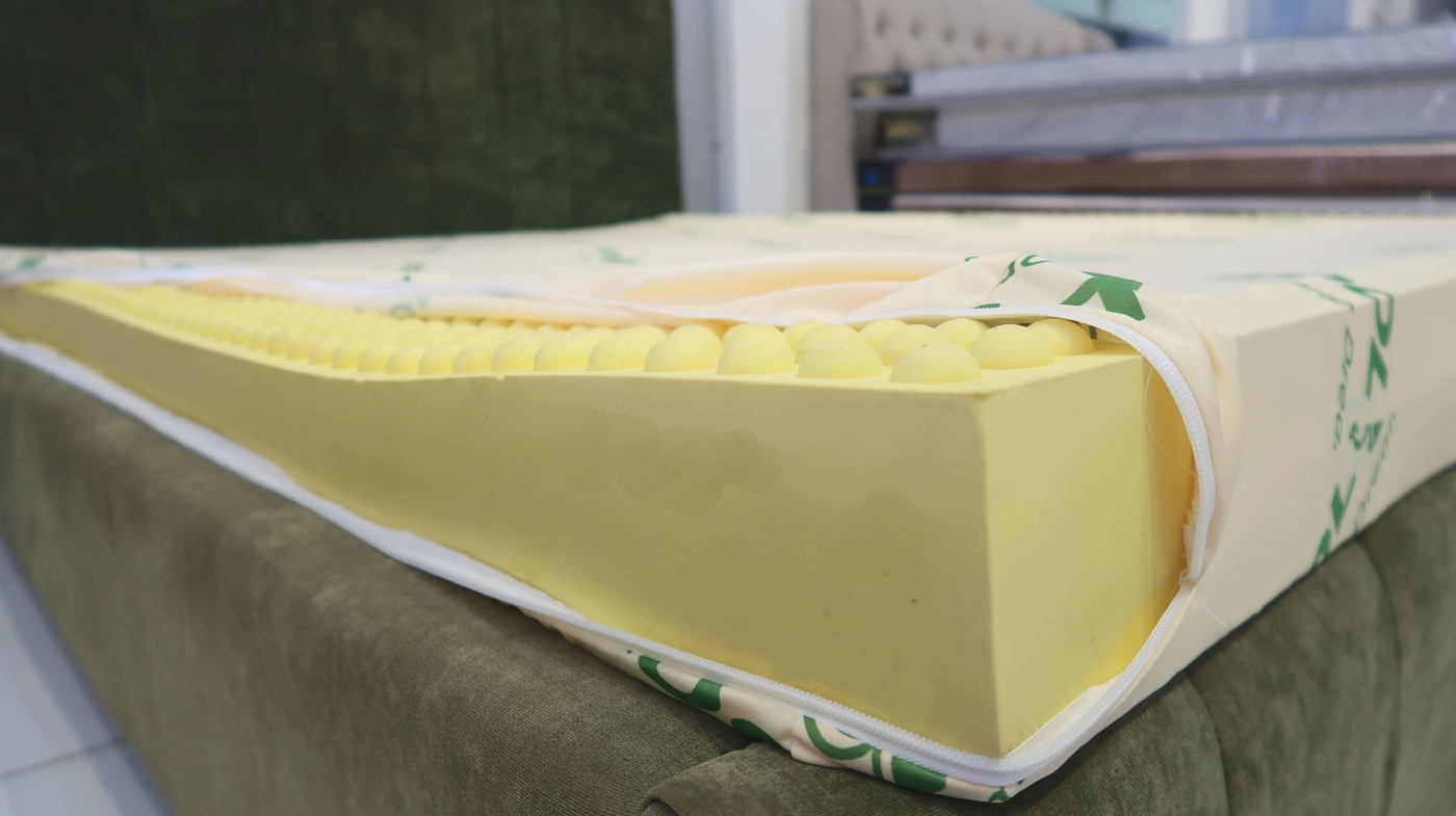 - Bề mặt nệm được thiết kế hàng ngàn núm tròn có tác dụng massage và hơn 500 lỗ thoáng lớn ở mặt dưới cho phép không khí lưu thong tối đa, mang đến cho người dùng cảm giác thông thoáng mà còn như được trải nghiệm cảm giác mát xa ngay trong từng giấc ngủ.