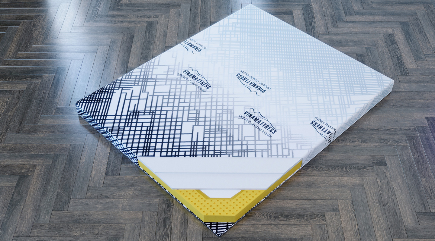 Nệm cao su Vinamattress mặt lổ vài thun xuyên kim Mô tả: Vinarubber Pure chọn lọc từ nguồn nguyên liệu 100% cao su thiên nhiên sạch khuẩn, mang thiết kế tinh giản với hơn 5000