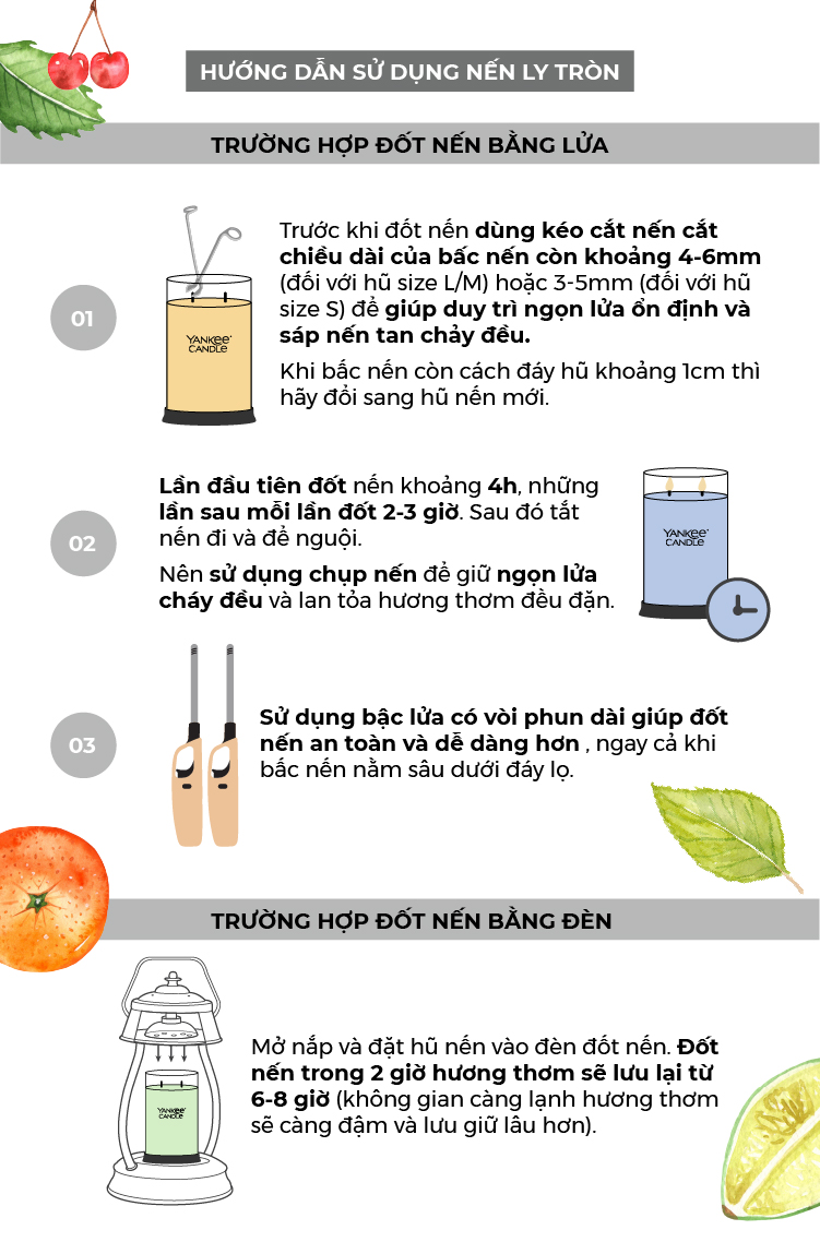 Kích thước: đường kính (D) x chiều cao (H): 5 x 5 cm Thời gian cháy 12 giờ liên tục. Sử dụng nguyên liệu hoàn toàn nhập khẩu. Sản phẩm cháy không khói, rất an
