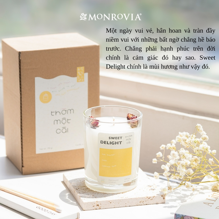 Nến thơm In Heaven mang hương thơm của hoa và gỗ - Nhẹ nhàng, hơi cá tính, không ngọt Nến thơm Sweet Delight mang hương thơm của hoa và trái cây - Ngọt, chua nhẹ