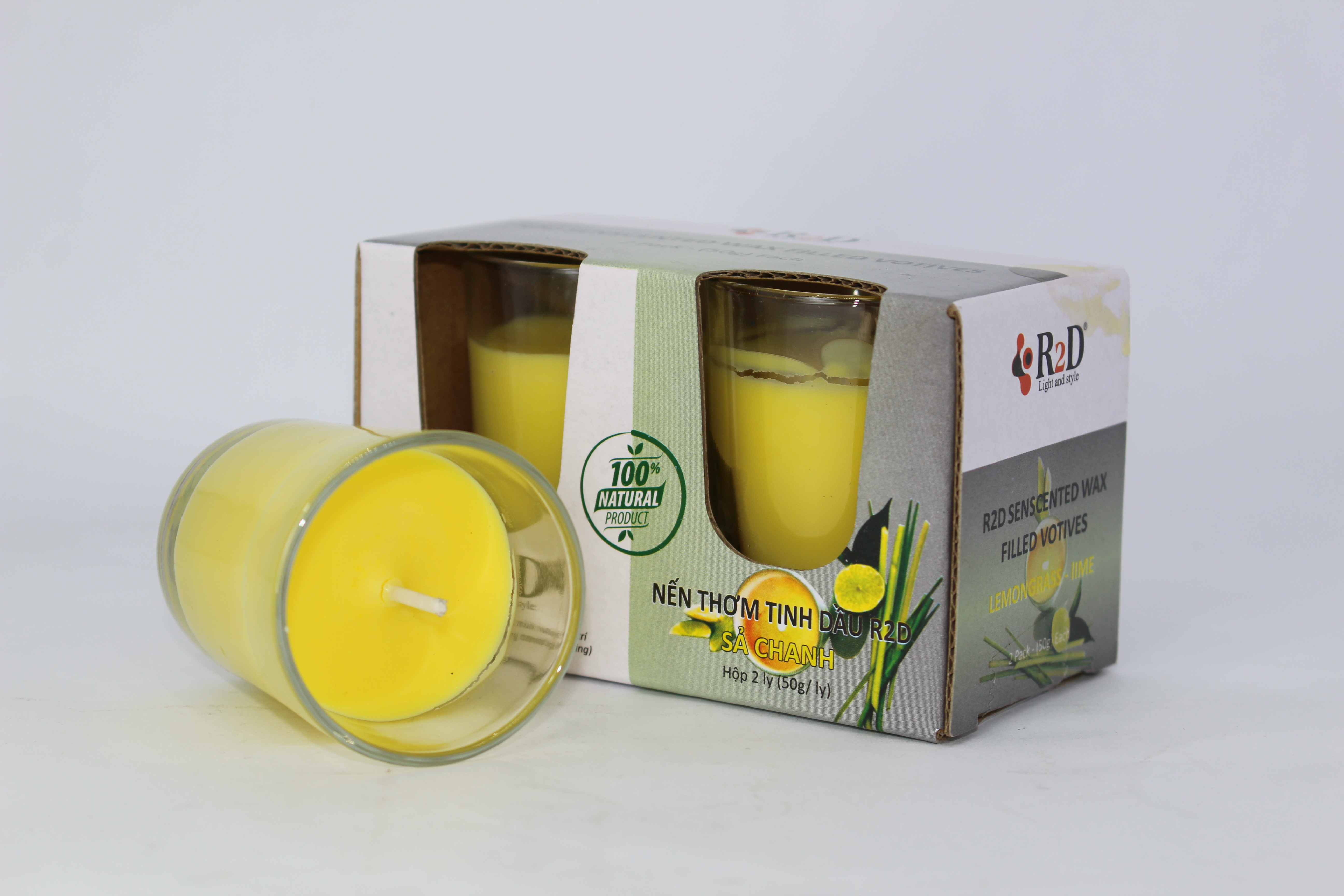 NẾN THƠM TINH DẦU SẢ CHANH [LY 50G - HỘP 2 LY] ĐẾN TỪ THƯƠNG HIỆU R2D, LÀM TỪ DẦU CỌ, DẦU DỪA, TINH DẦU, NGUYÊN LIỆU TỰ NHIÊN, LÀNH TÍNH. - Chúng