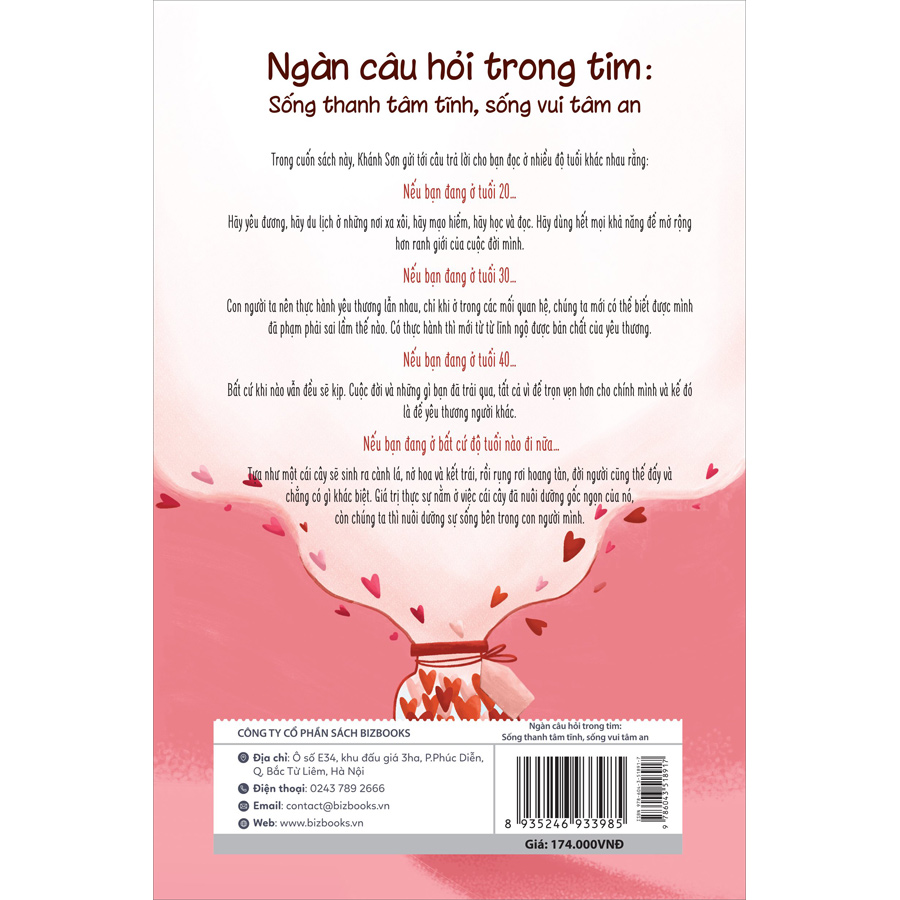 Nếu như bạn đang chất chứa quá nhiều câu hỏi về chuyện đời, chuyện tình mà chưa có một lời giải đáp thì cuốn sách “Ngàn câu hỏi trong tim: Sống thanh tâm tĩnh, sống vui tâm an” chính là một lựa chọn hàng đầu để gỡ bỏ nút thắt trong lòng. Một ngàn câu hỏi ở đây không phải tác giả hỏi mọi người, mà thực chất, đây chính là những câu hỏi của tất cả mọi người gửi đến tác giả. Những phần giải đáp đa chiều đầy tâm đắc, lan toả sự tích cực dù rằng, những câu trả lời của tác giả đưa ra theo khía cạnh cá nhân, thế nhưng, những lời hồi đáp ấy lại mang tính gợi mở rất mạnh mẽ."