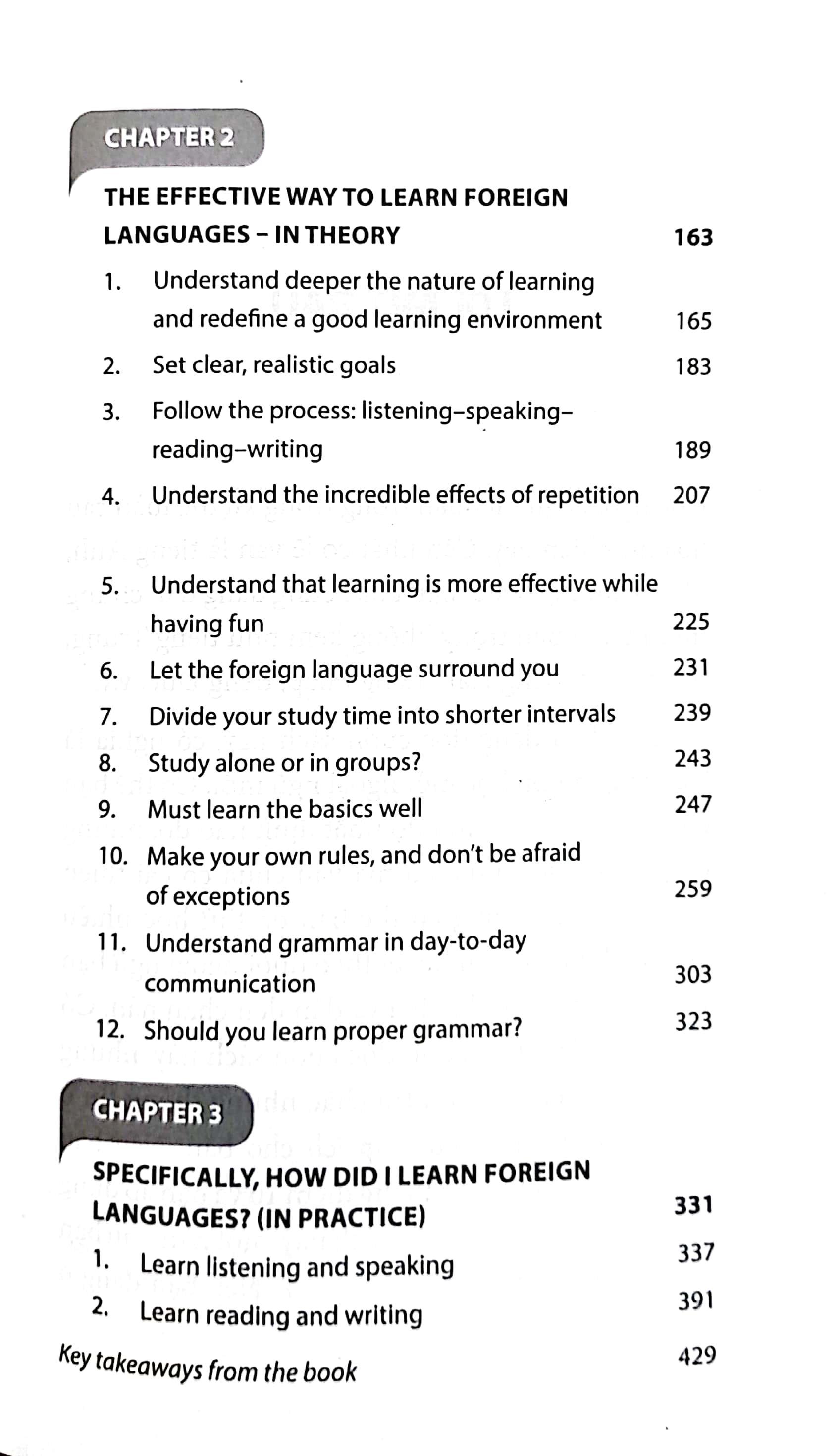Đây không phải là một cuốn sách dài, nên có thể bạn sẽ đọc hết trong một hai ngày. Nó cũng không dạy bạn ngữ pháp, hay từ vựng gì cả, vì ngoài kia đã có vô vàn cuốn sách viết chuyên sâu về những chủ đề đó. Ngoại ngữ là đại dương vô biên, đi không bao giờ hết, không có hải đăng chỉ đường, bạn sẽ bị lạc lõng, nản lòng, và bỏ cuộc. Trong đại dương bao la ấy, đại đa số những thứ mà bạn nhìn thấy đều không quan trọng, 10% trong số chúng sẽ đem lại cho bạn 90% thành quả thực tế trong cuộc sống. Cuốn sách này sẽ phần nào giúp bạn định hướng để tìm ra 10% ấy cho m.ình.