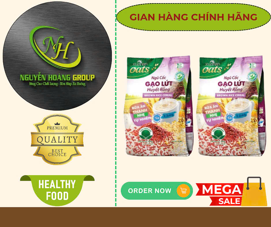 Mua tại TiktokThành Phần: Gạo lứt huyết rồng , Yến Mạch , Ngô , Đậu Xanh , lúa mạch , múa mỳ , canxi Công dụng : Trong ngũ Cốc có đường ISOMALT : Đây là loại dường chiết xuất từ củ cải đường , được viện dinh dưỡng và trung tâm nghiên cứu bệnh đái tháo đường khuyên dùng => Rát tốt cho sức khỏe , phòng bệnh mãn tính đặc biệt là bệnh tiểu đường. Đối Tượng Sử dụng: